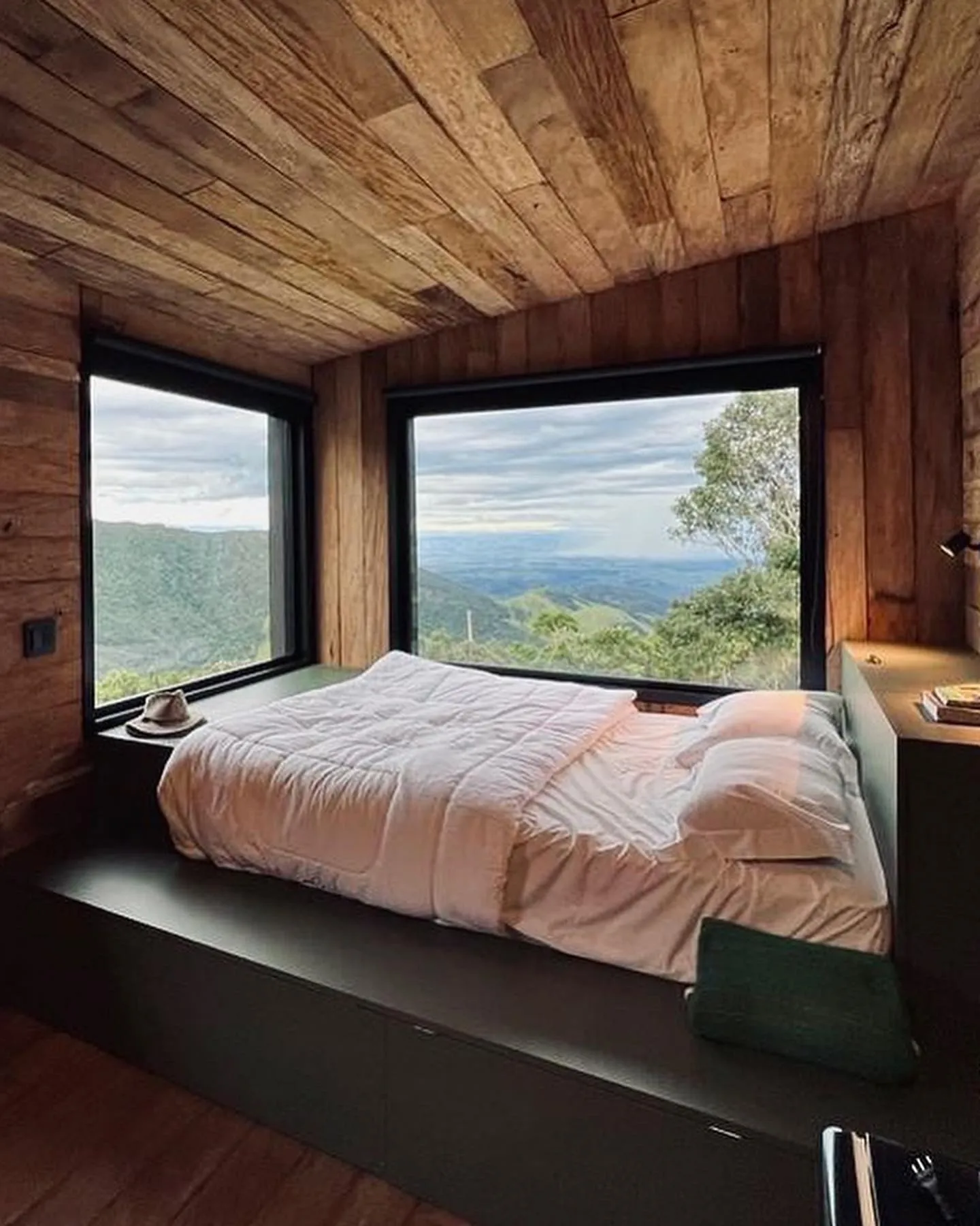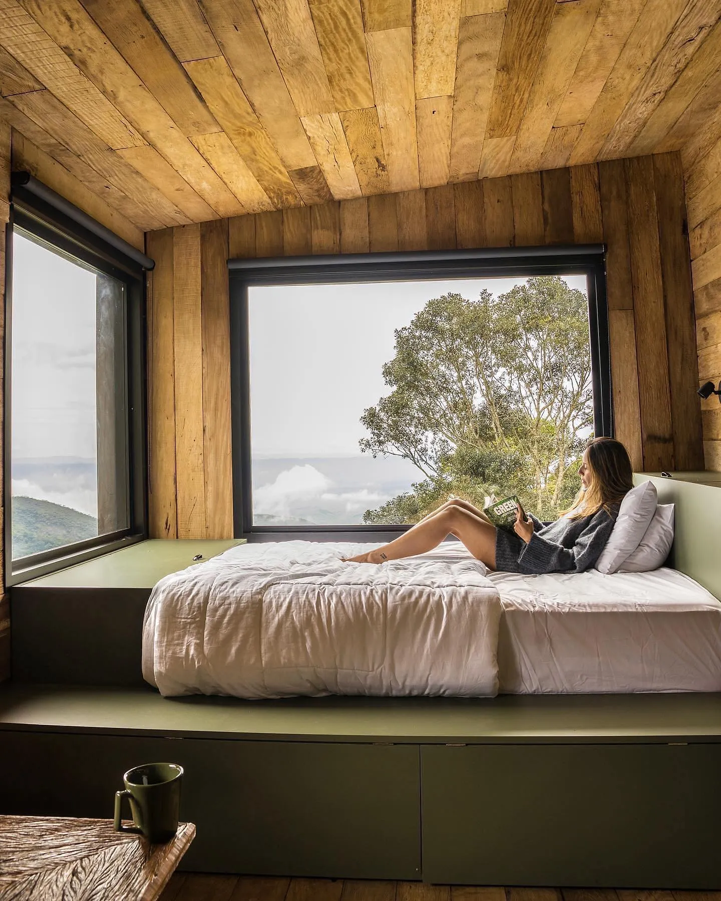 Uma Tinyhouse sustentável, totalmente equipada, trazendo luxo e aconchego na hospedagem em meio à montanha.