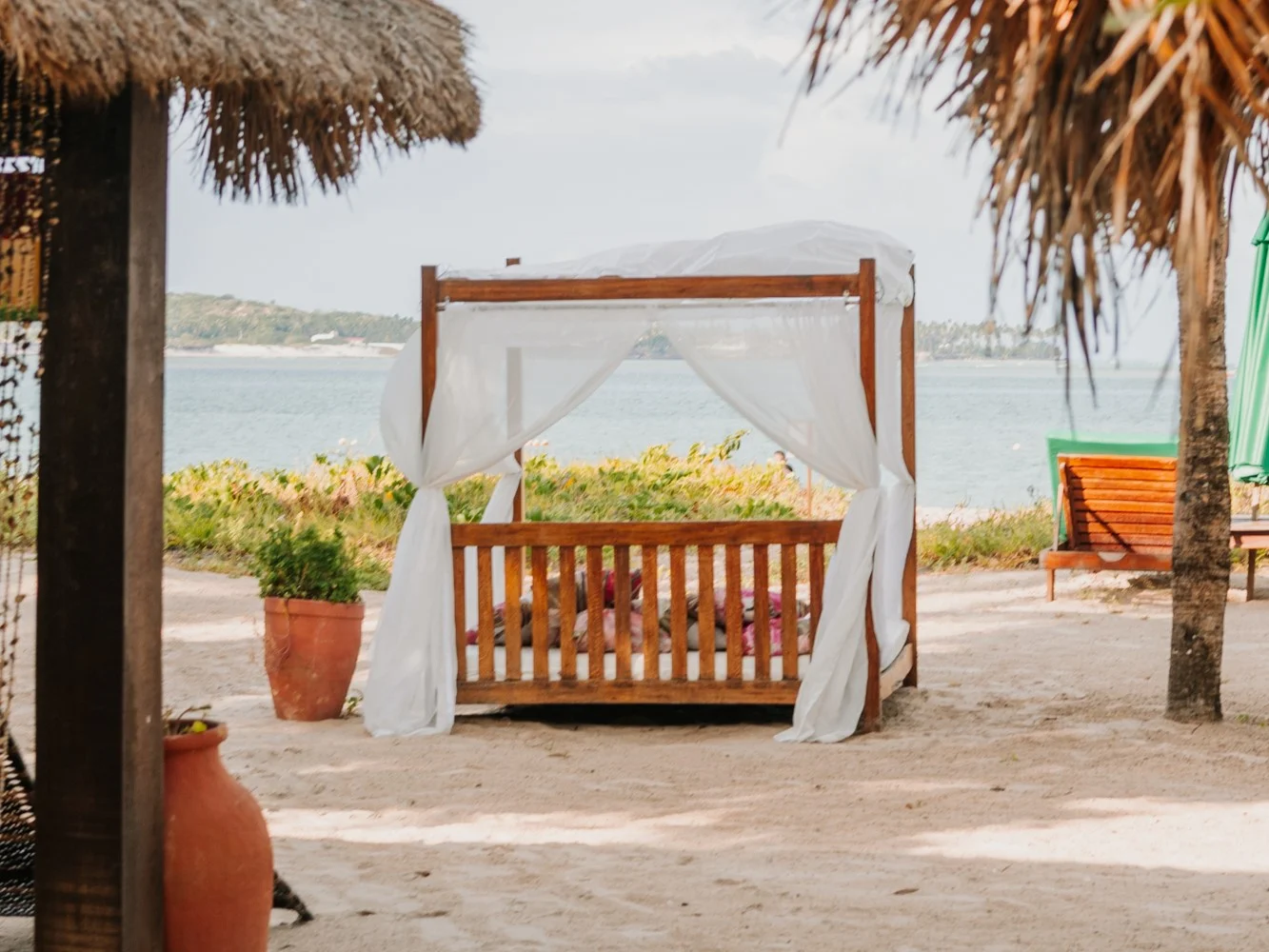 Pousada com piscina próxima à praia, 12 Bangalos com piscinas privativas, alguns com banheiras de hidromassagem e 4 apartamentos . Situada na beira mar da paradisíaca Praia dos Carneiros fica bem próxima a famosa igrejinha de Carneiros . Possui um charmoso restaurante com vista para o mar, boa música e com gastronomia típica e diversificada . Ideal para casais românticos e para aqueles que desejam um belo descanso .