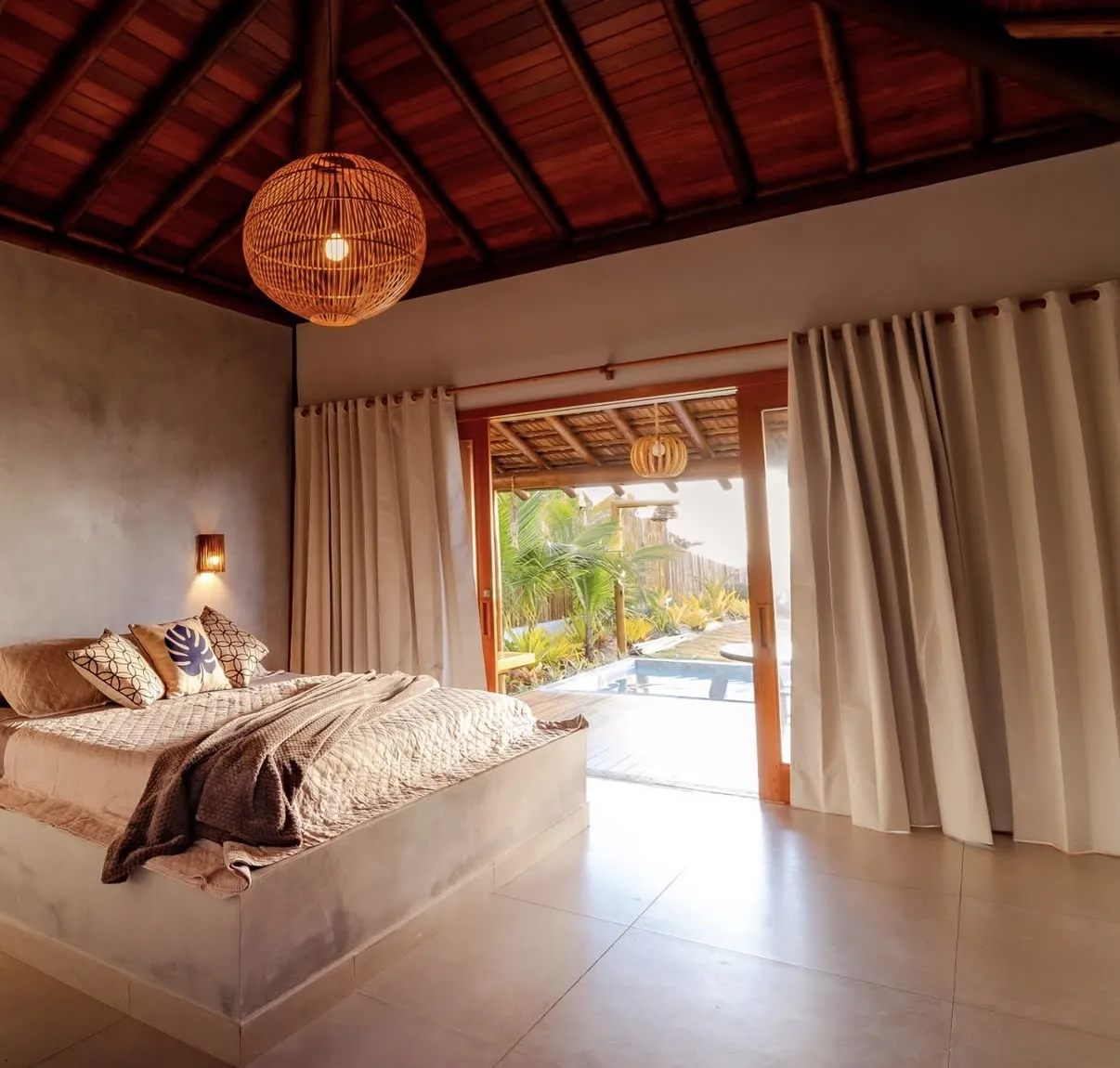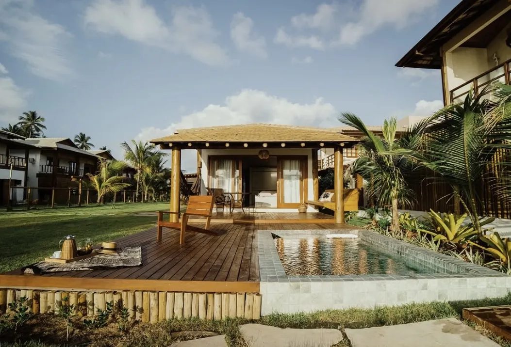 Localizado em um dos destinos mais paradisíacos da Península de Maraú, o Bangalô Master proporciona uma experiência de hospedagem inesquecível. Com 75m² de puro requinte, este refúgio exclusivo conta com um amplo deck privativo de frente para o mar e piscina particular, criando um ambiente perfeito para momentos de relaxamento e contemplação. Inserido em um condomínio fechado com acesso facilitado por estrada pavimentada, o espaço oferece privacidade e segurança sem abrir mão da integração com a natureza. O design aconchegante e sofisticado harmoniza-se perfeitamente com o cenário exuberante, onde cada detalhe foi pensado para proporcionar máximo conforto. Acorde com o som das ondas, aproveite a tranquilidade de uma praia quase deserta e desfrute de um pôr do sol deslumbrante no melhor ponto da Península. O Bangalô Master é o equilíbrio perfeito entre luxo e natureza, garantindo uma estadia única para quem busca sofisticação e exclusividade à beira-mar.