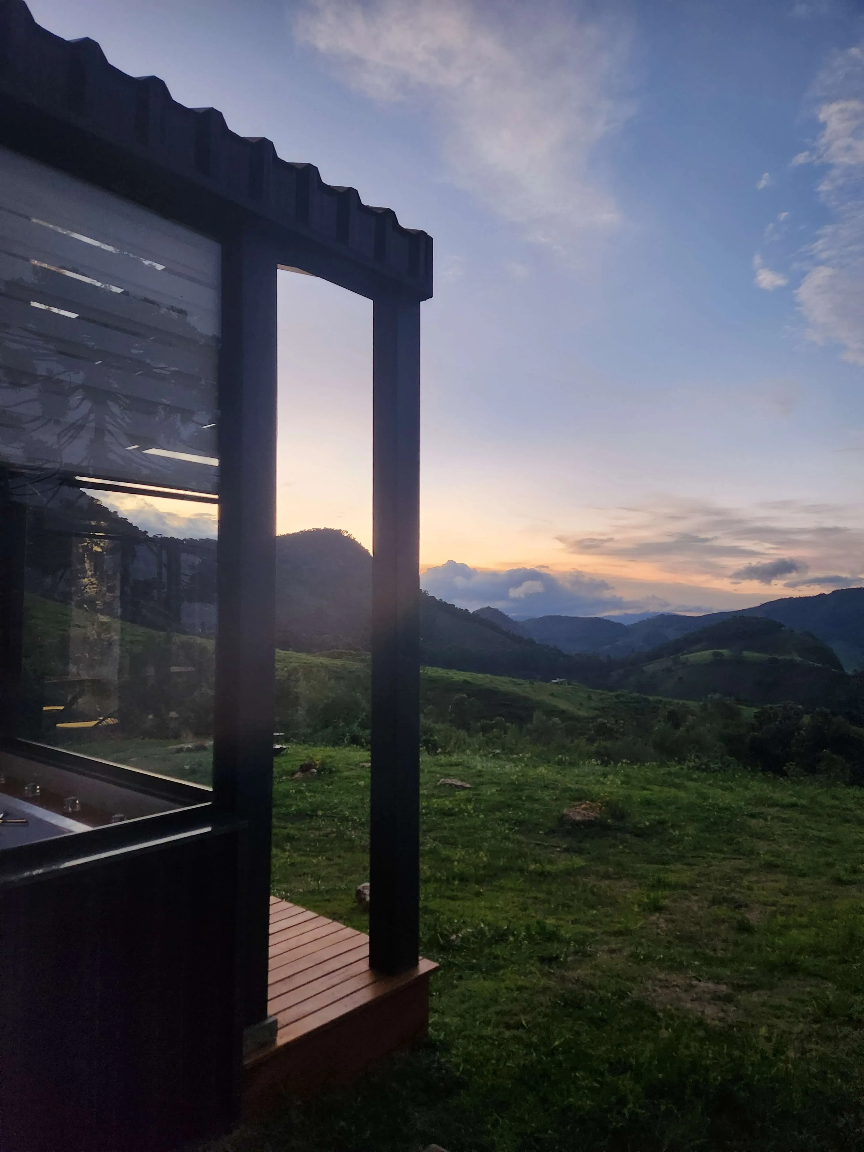 Os Chalés Bergview são dois chalés preparados para casais que buscam conforto, privacidade, contato com a natureza e descanso. Os chalés estão a 1650m de altitude, com vista de tirar o fôlego. Têm 80m² de área construída, possuindo lareira de dupla combustão, ar condicionado quente e frio, cozinha completa (taças de cristal, louça de cerâmica, panela de fondue, talheres normais e para churrasco, panelas, fogão, forno elétrico, chaleira elétrica, cafeteira elétrica, frigobar com água, refrigerantes e cervejas), churrasqueira, Smart TV de 55 polegadas, banheira de hidromassagem dupla, deck com mesa e cadeiras, poltronas na sala de estar e uma mini adega com vinhos e espumantes. Internamente os chalés são idênticos. Porém, o Araucária está um pouco acima e o Echaporã tem uma ampla área gramada em frente com lareira externa que pode ser utilizada para fazer churrasco. Todos os dias é entregue uma cesta de café da manhã no conforto do chalé. Temos parceria com massoterapeuta que atende o hóspede no interior do chalé ou no deck, no horário combinado (serviço cobrado à parte).