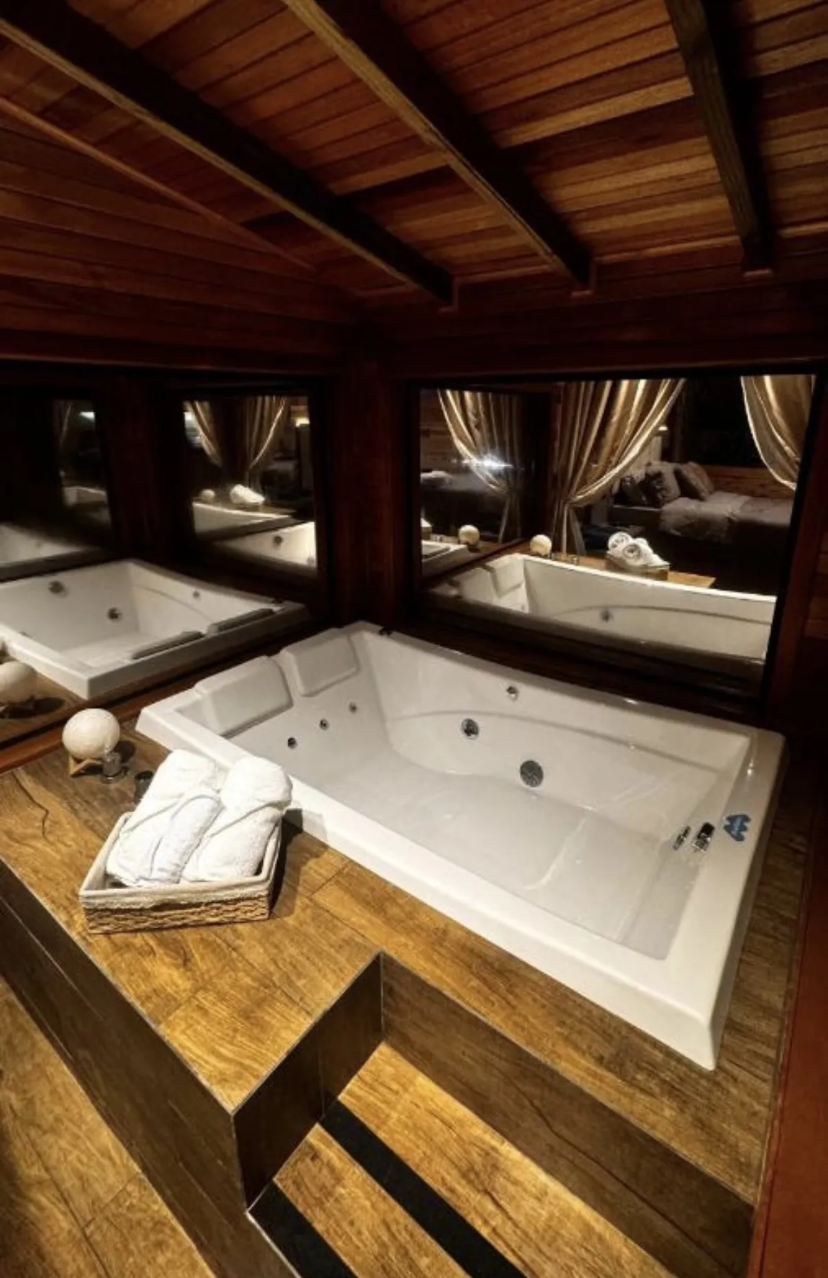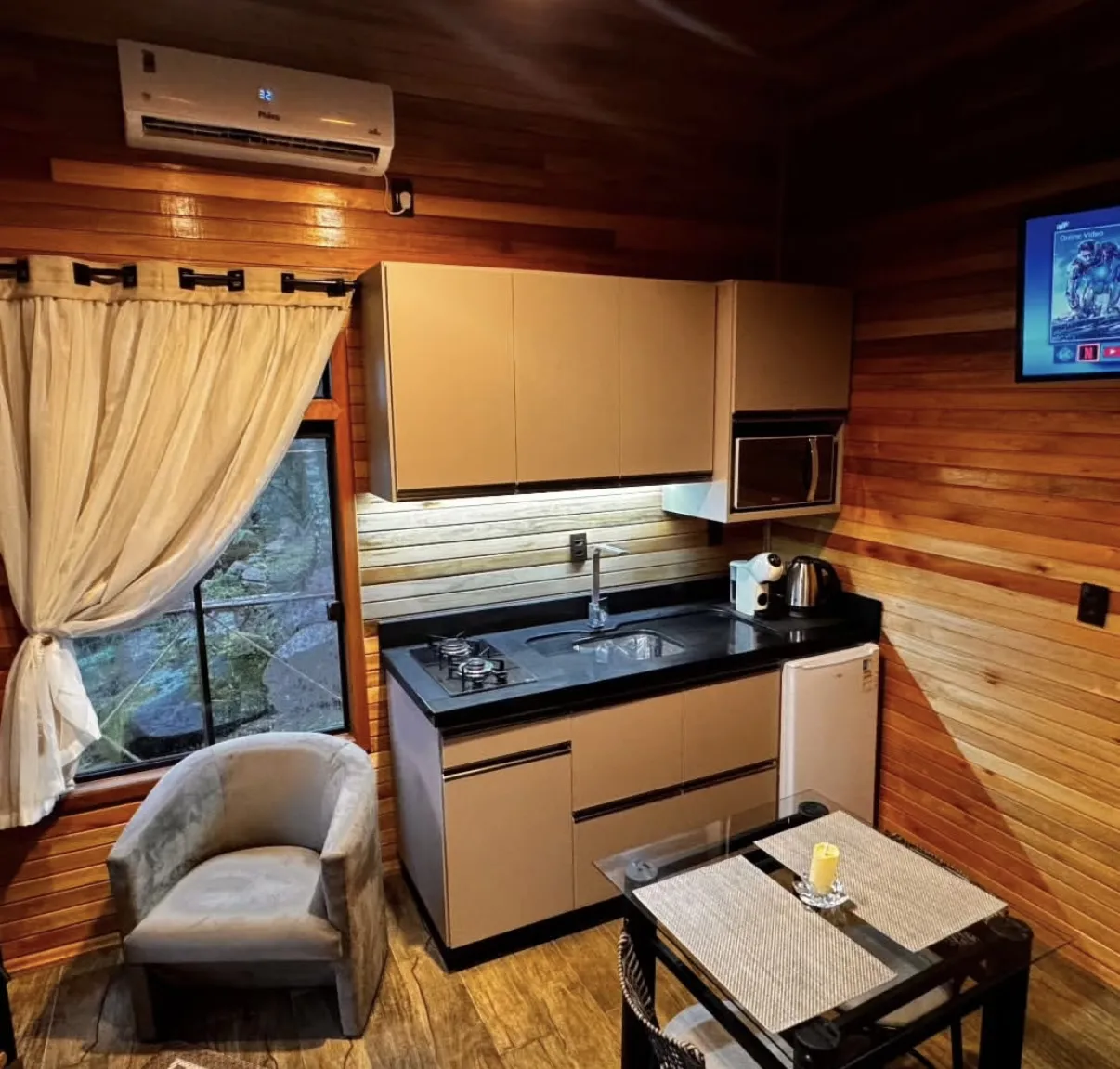 Ar condicionado Secador de cabelo TV a cabo / Smart TV Jacuzzi / Ofurô / Banheira Coberta Frigobar Lareira Máquina de Café Enxoval de Luxo (+ Roupão e Pantufa) Sauna Cozinha Estação de trabalho (mesa e cadeira) Piscina Aquecida ou climatizada Borda Infinita Coberta