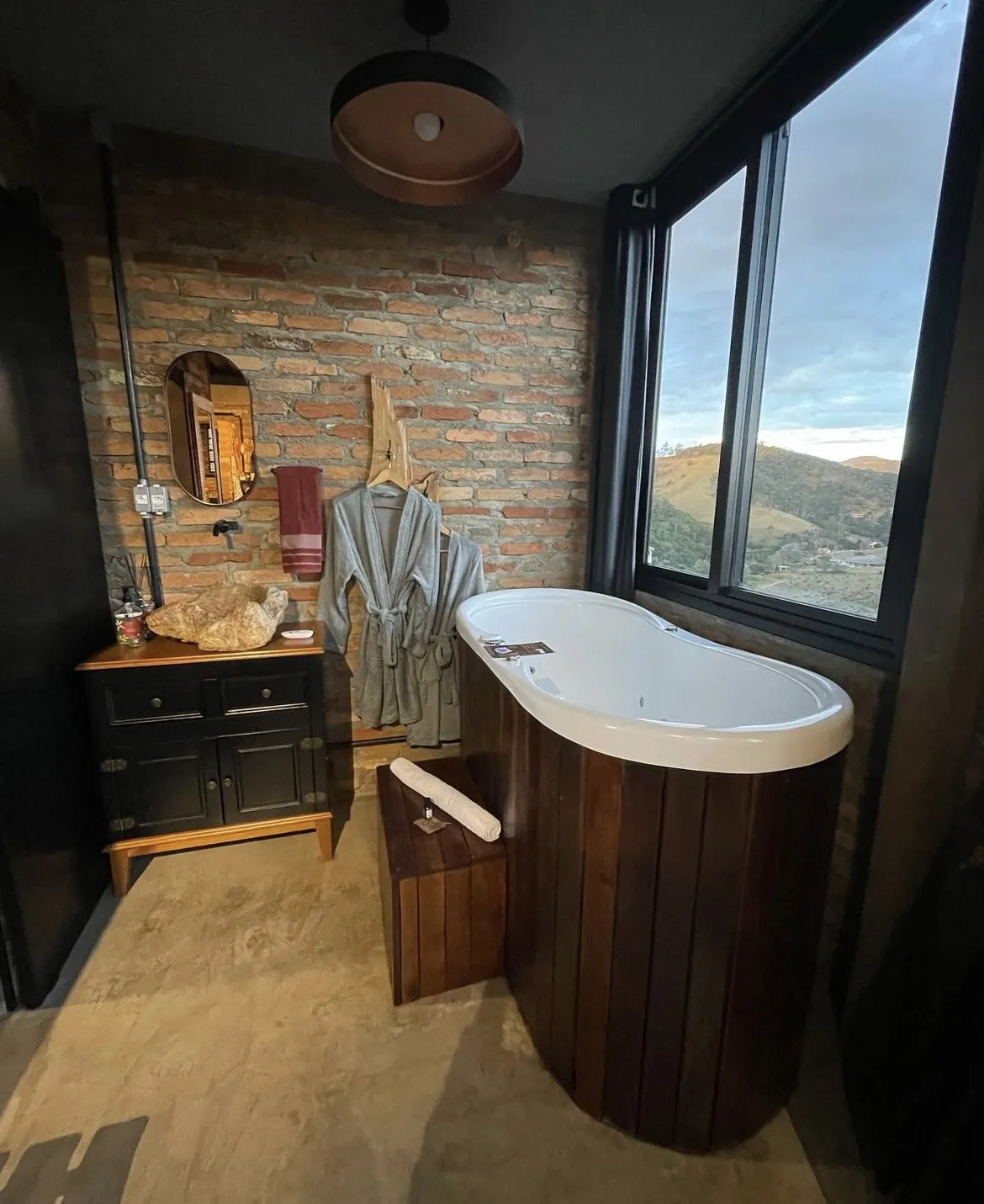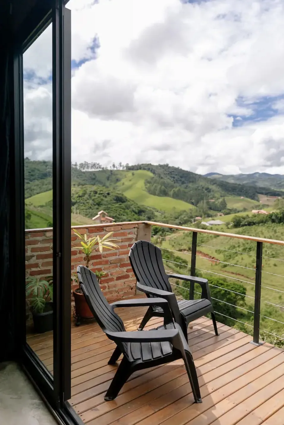 Descanse em um refúgio com vista para as montanhas. Ideal para quem deseja recarregar as energias, celebrar o amor com uma taça de vinho ou até mesmo trabalhar remotamente. O espaço possui vista panorâmica para as montanhas. A proposta é proporcionar a experiência de aproximação constante com a natureza que, por sinal, é linda em todas as suas fases, noturnas ou diurnas.