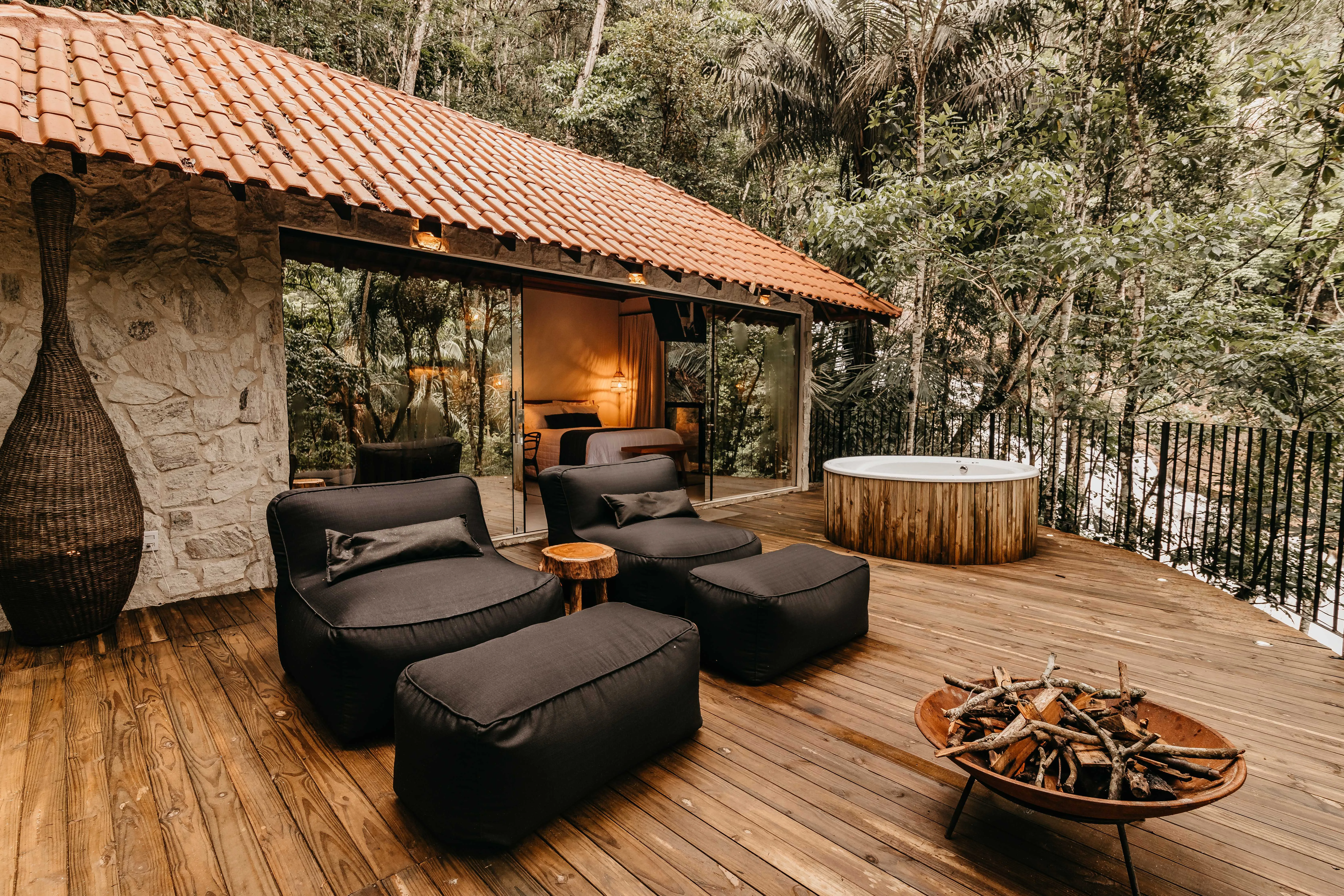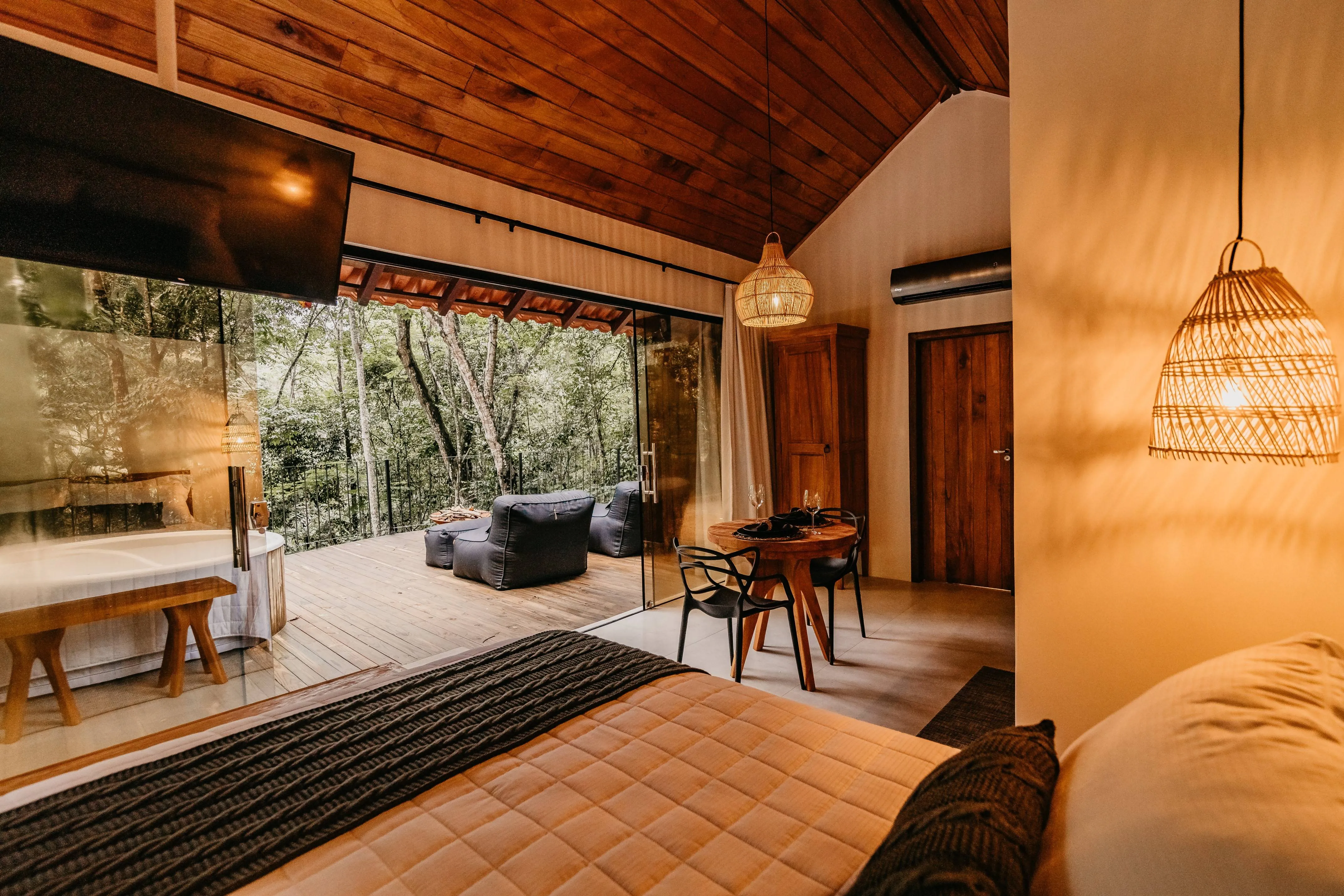 Ar condicionado Secador de cabelo TV a cabo / Smart TV Jacuzzi / Ofurô / Banheira Coberta Frigobar Lareira Máquina de Café Enxoval de Luxo (+ Roupão e Pantufa) Sauna Cozinha Estação de trabalho (mesa e cadeira) Piscina Aquecida ou climatizada Borda Infinita Coberta