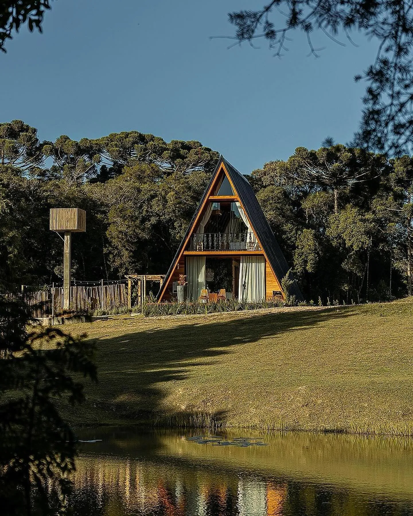 Construída no estilo A-frame em uma área de 15.000 metros, localizada na área rural do município de São José dos Pinhais.