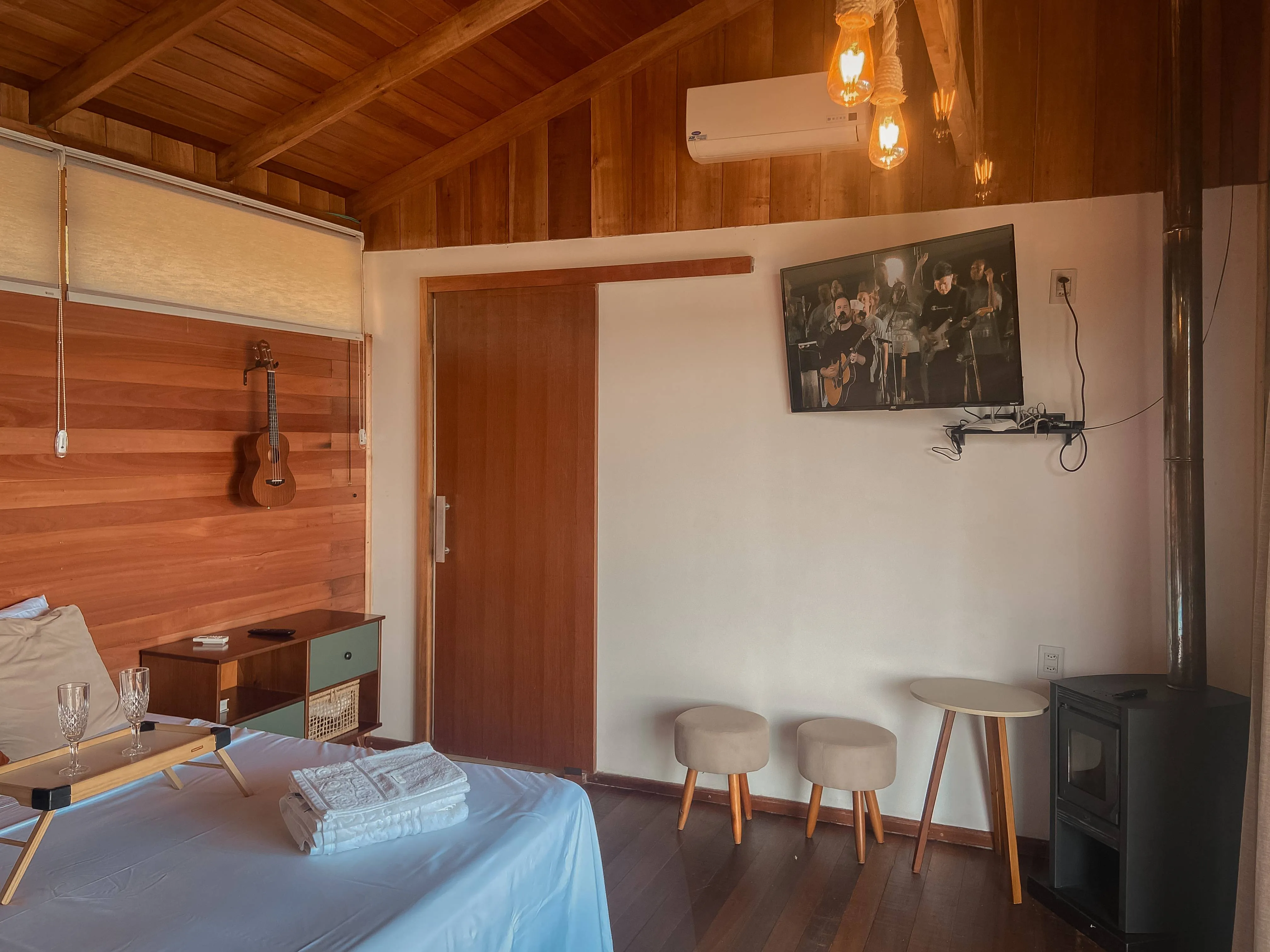 Ar condicionado Secador de cabelo TV a cabo / Smart TV Jacuzzi / Ofurô / Banheira Coberta Frigobar Lareira Máquina de Café Enxoval de Luxo (+ Roupão e Pantufa) Sauna Cozinha Estação de trabalho (mesa e cadeira) Piscina Aquecida ou climatizada Borda Infinita Coberta