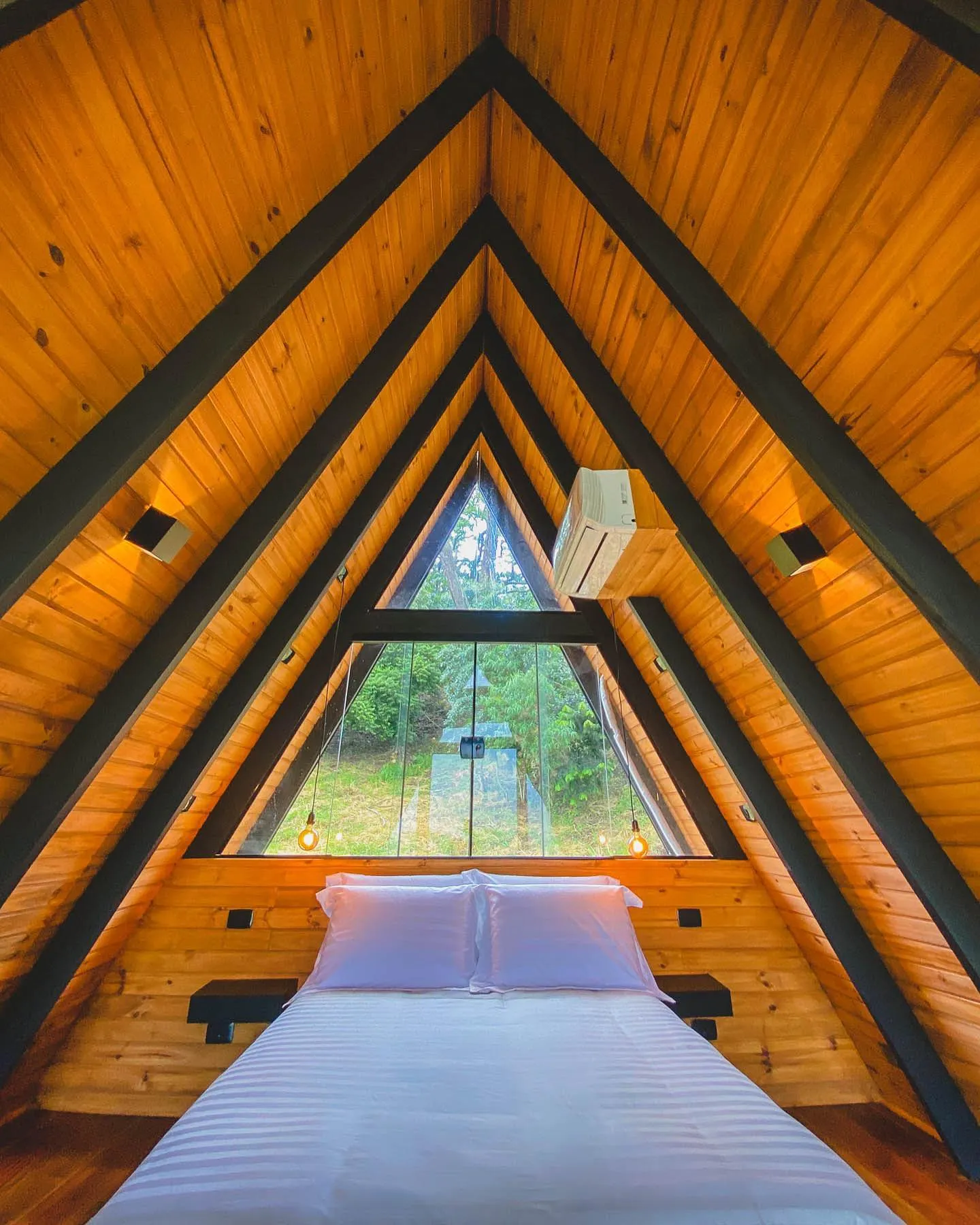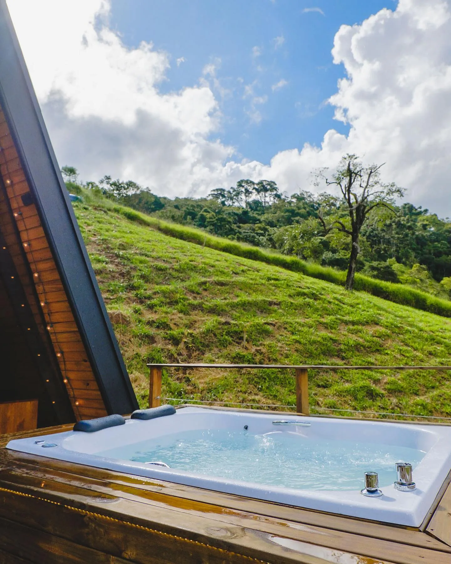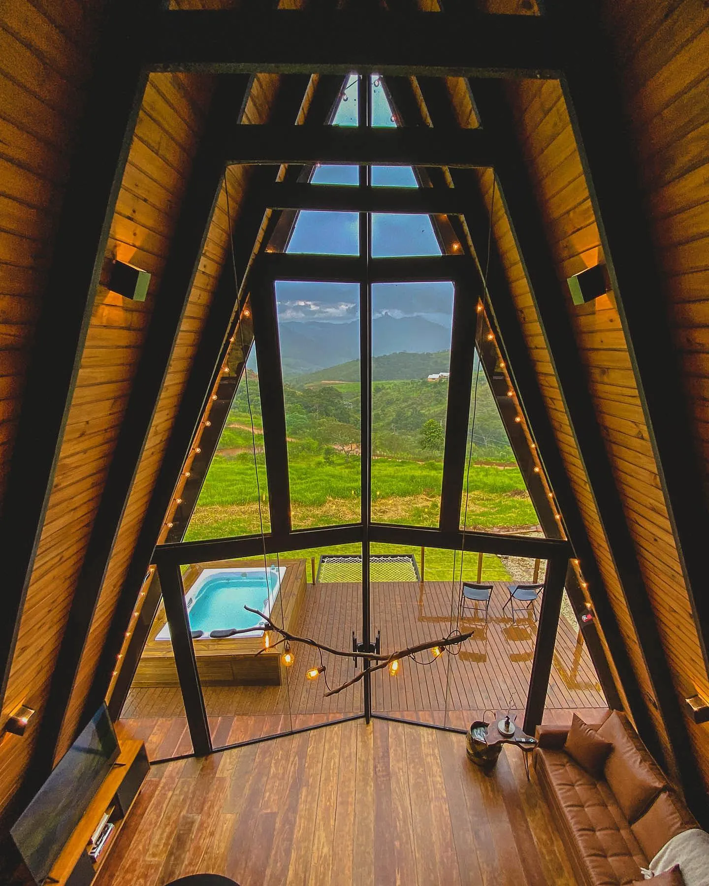 Uma cabana A Frame, no meio da Serra da Mantiqueira. Ela fica no meio do mato mas com todo conforto, um lugar calmo com uma vista incrível para a Pedra da Baú. A localização é excelente, está entre Santo Antônio do Pinhal e São Bento do Sapucaí, a 25km de Campos do Jordão. Ela oferece total privacidade. A cabana possui uma cozinha completa, ducha a gás bem quente. A banheira fica no deck, assim os hóspedes sempre terão a melhor vista o tempo todo. A cabana tem 50 metros quadrados. A sala e cozinha são integradas com toda a frente de vidro, assim sempre tendo vista para a Pedra do Baú. Pode ser aquecida com o calefator/lareira ou com o ar quente do ar condicionado. Situada dentro de um condomínio rural, os hóspedes terão toda privacidade e ao mesmo tempo segurança com outras pousadas e casas ao redor. No mezanino fica o quarto, com uma cama de casal e ar condicionado. Na parte externa os hóspedes podem aproveitar a rede elevada, curtir uma fogueira a noite e durante o tempo todo relaxar na hidromassagem.