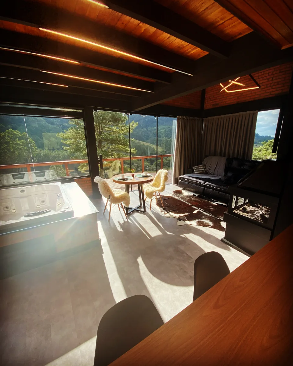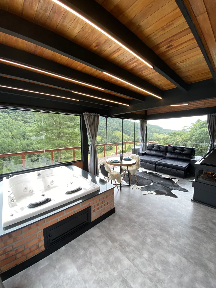 Ar condicionado Secador de cabelo TV a cabo / Smart TV Jacuzzi / Ofurô / Banheira Coberta Frigobar Lareira Máquina de Café Enxoval de Luxo (+ Roupão e Pantufa) Sauna Cozinha Estação de trabalho (mesa e cadeira) Piscina Aquecida ou climatizada Borda Infinita Coberta
