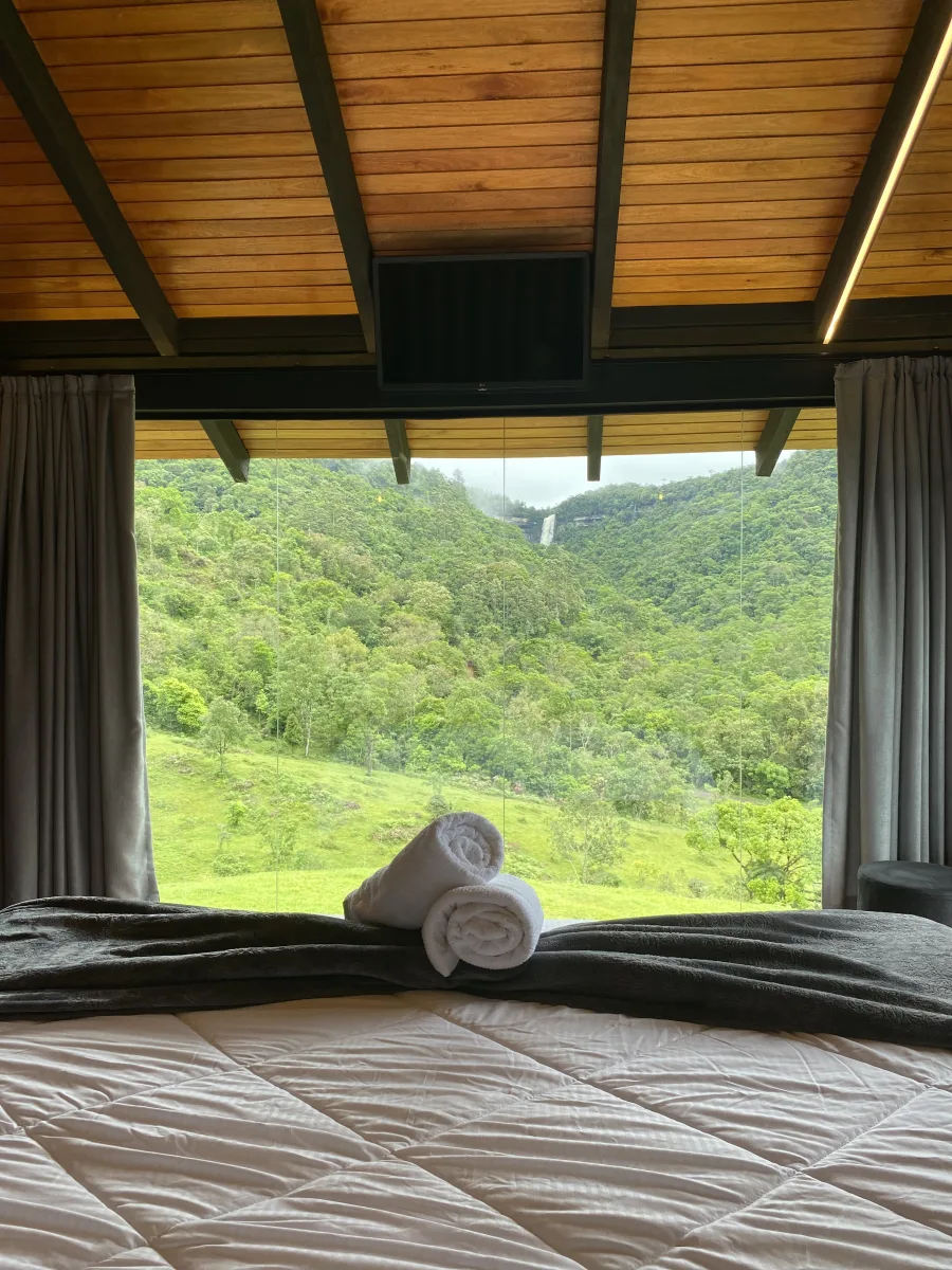 Uma cabana super charmosa, ampla e com vista para a cachoeira… Perfeita para passar dias inesquecíveis em meio à natureza.