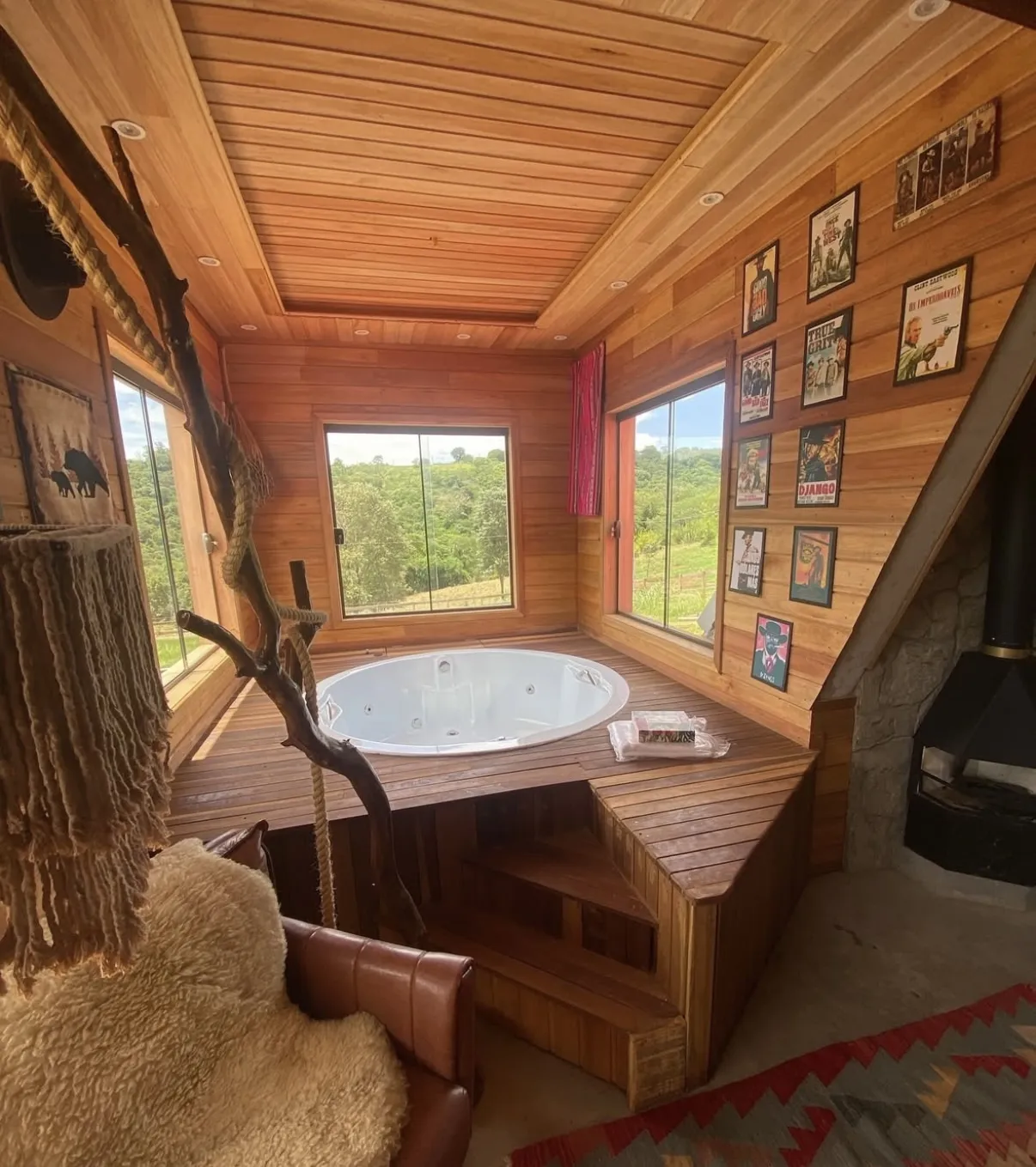 Na Cabana Pé Vermelho, cada detalhe é uma parte de uma história única. A luz suave que entra pelas janelas, o som acolhedor do vinil na vitrola e a decoração que envolve, criando um ambiente que faz você se sentir verdadeiramente em casa. Um refúgio simples, rústico, mas com uma alma que transforma a experiência em algo especial e inesquecível. Um lugar onde o tempo desacelera e a tranquilidade reina, perfeito para quem busca conexão com a natureza e momentos de paz.