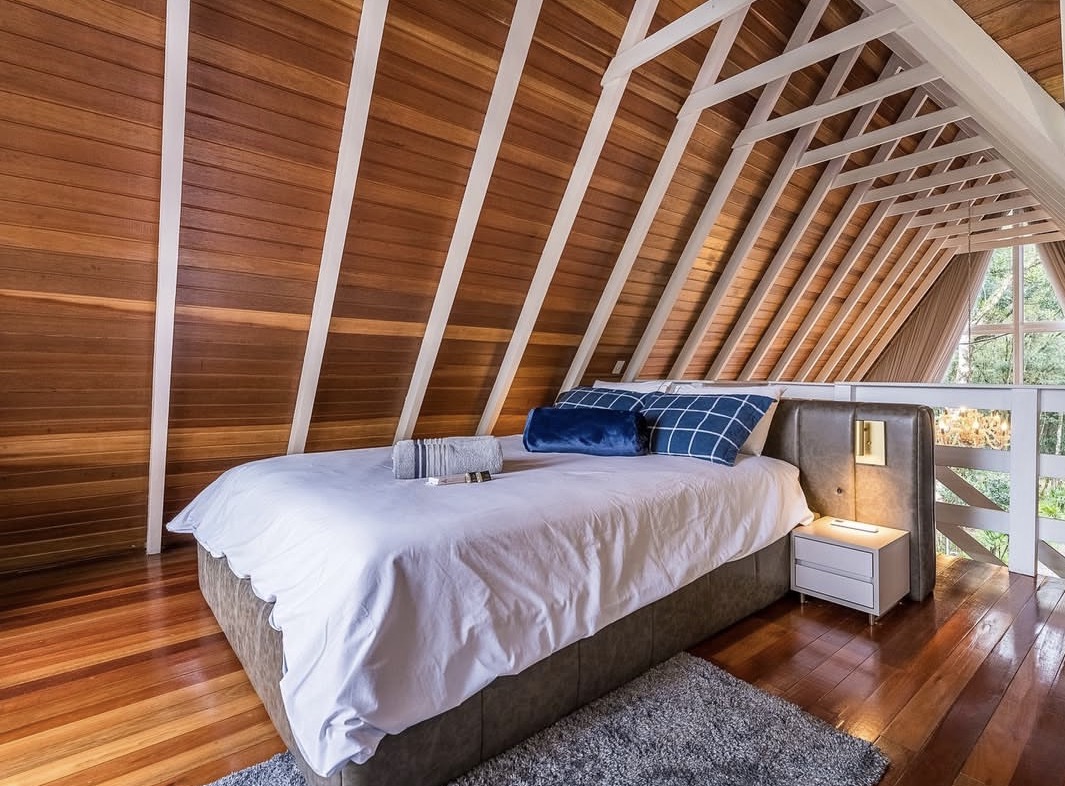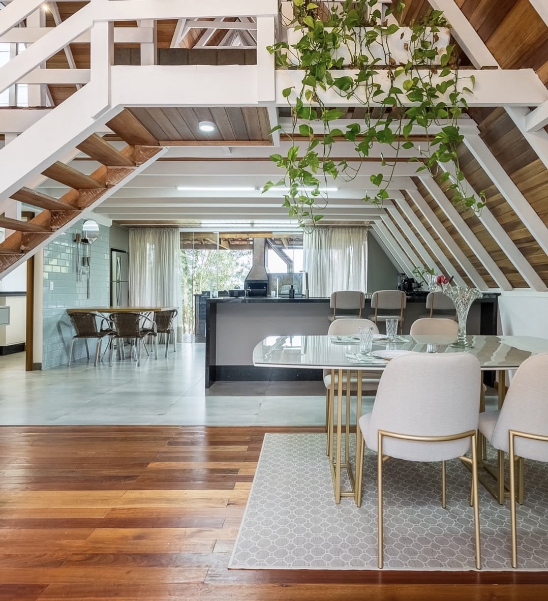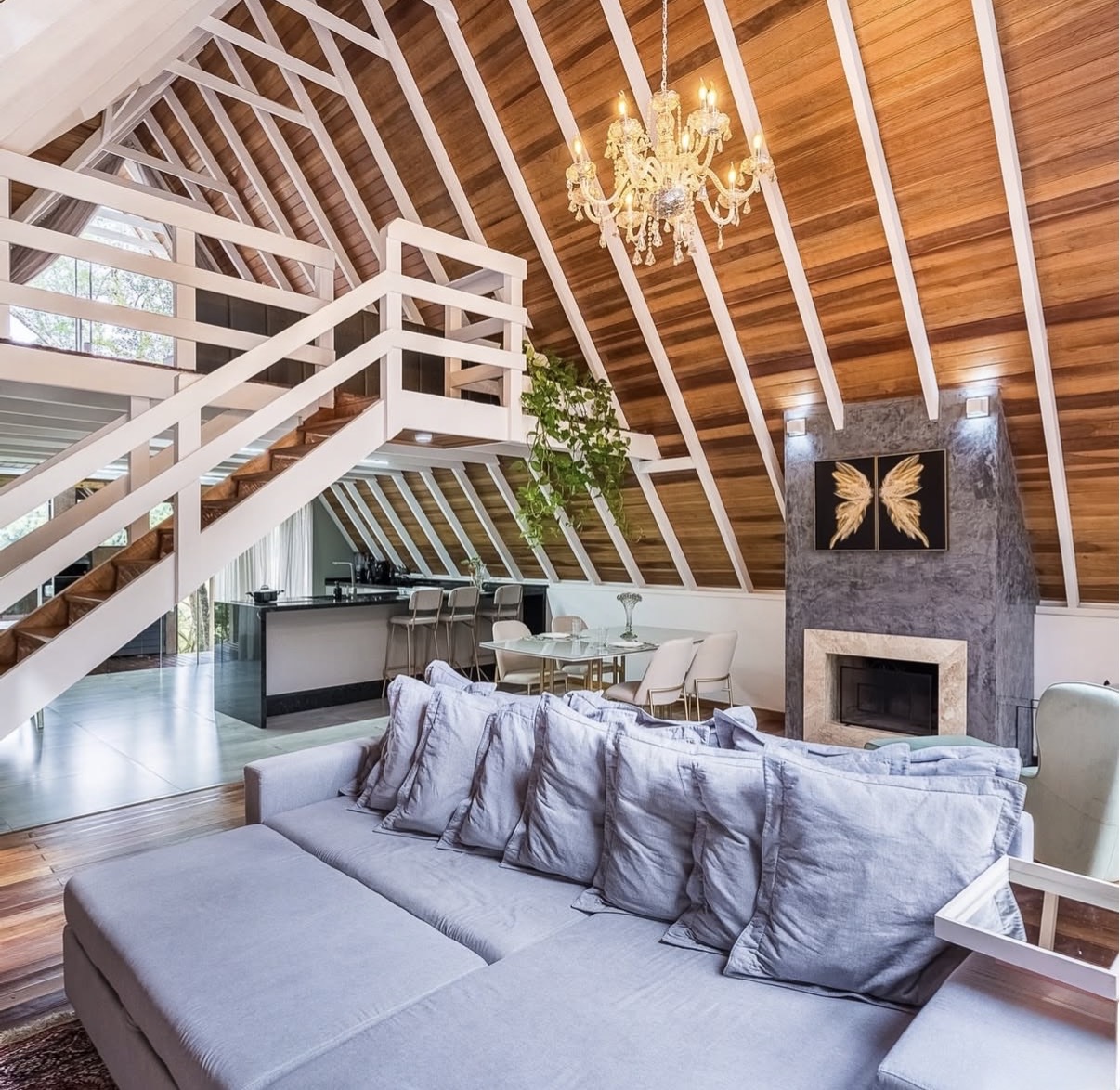 O chalé está inserido em um cenário de natureza exuberante, ideal para quem deseja se afastar do ritmo urbano e vivenciar momentos de tranquilidade absoluta. A arquitetura valoriza a integração com o ambiente ao redor, com amplas superfícies envidraçadas que permitem contemplar a paisagem, a luz natural e o céu estrelado, criando uma atmosfera acolhedora e sofisticada.