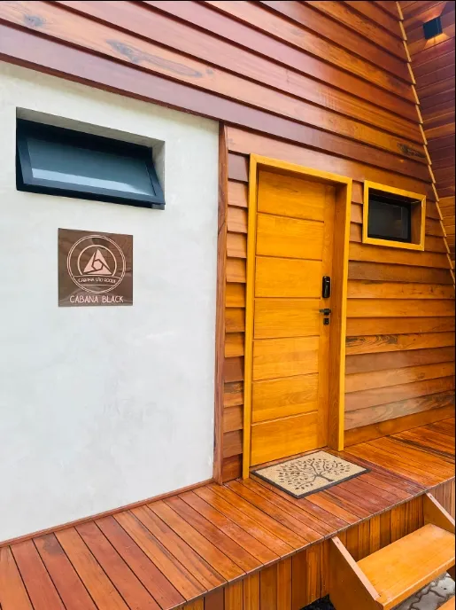 Nosso espaço conta com um terreno de cerca de 1000m2, são duas Cabanas disponíveis para locação, cada Cabana é inteiramente reservada para cada hóspede.