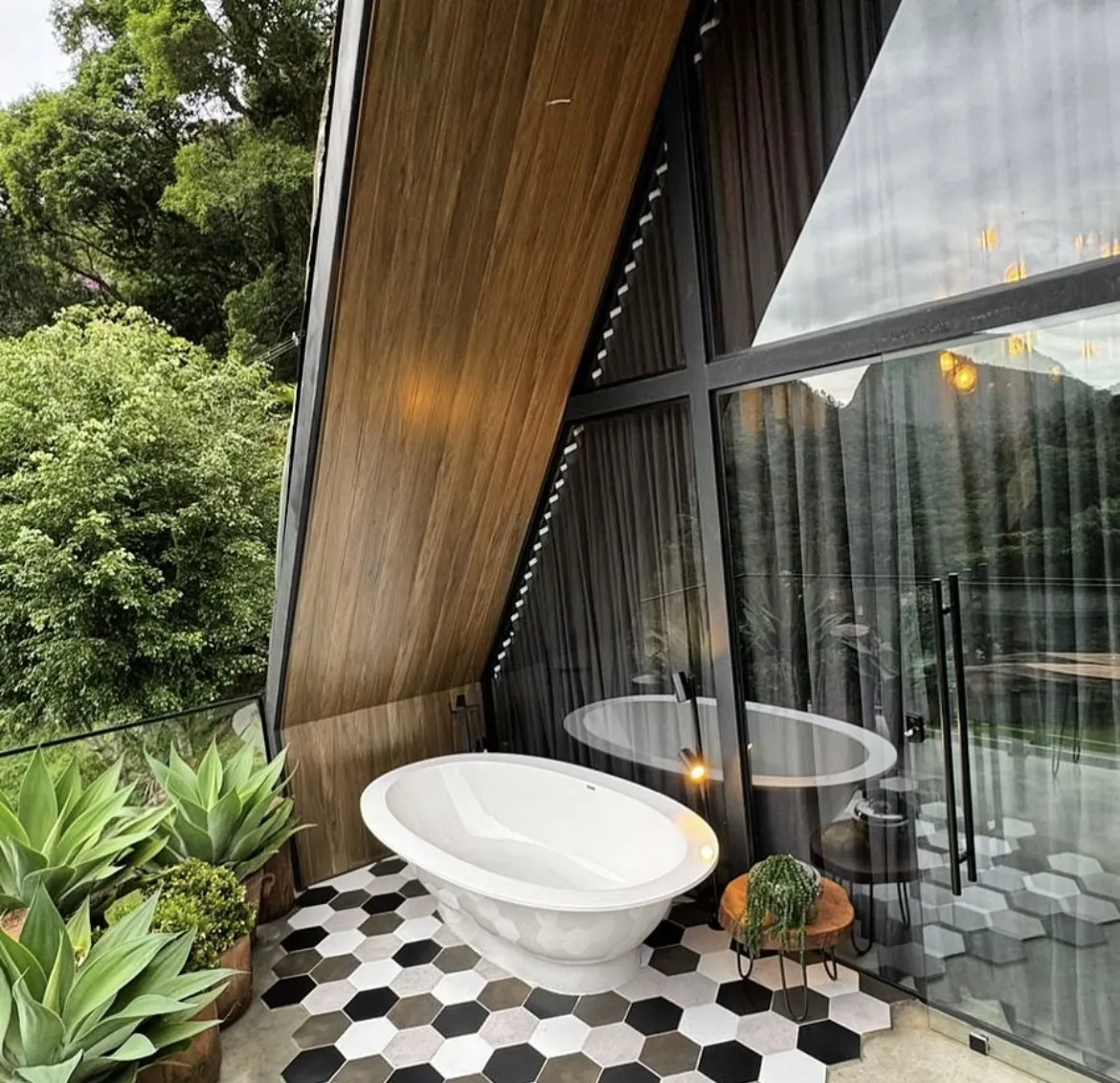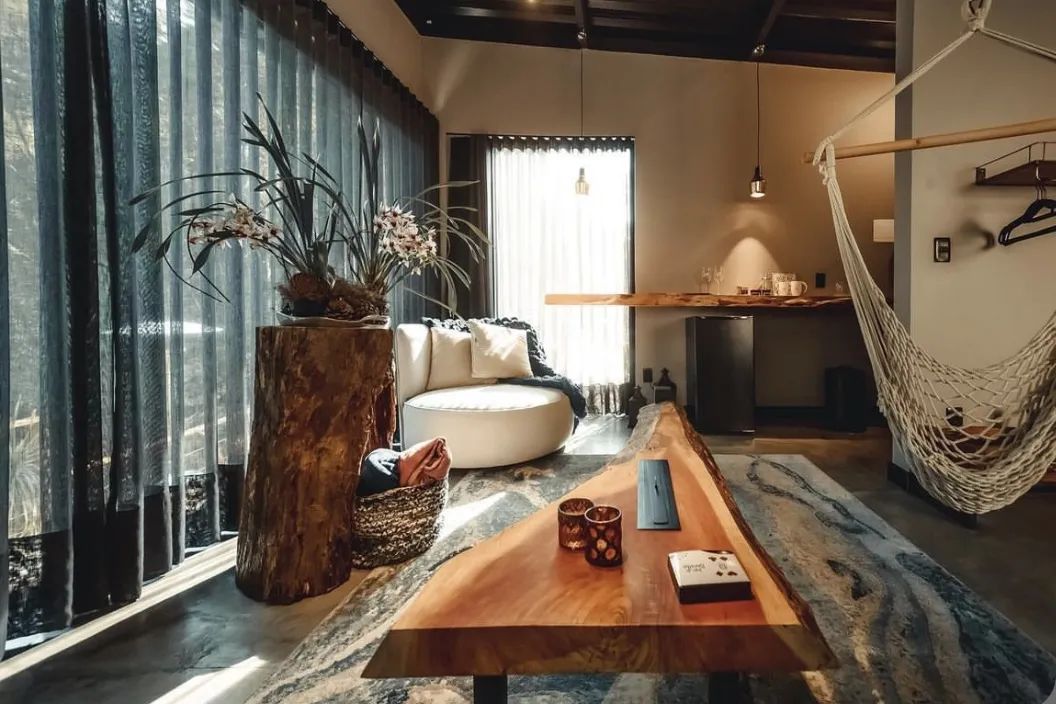 Ao entrar na cabana, os visitantes serão recebidos por uma atmosfera romântica e acolhedora, com uma lareira que proporciona calor e conforto nas noites mais frias. Para momentos especiais, é possível desfrutar do fogo de chão, criando uma atmosfera ainda mais íntima. Instalamos ofurôs privativos nas cabanas Orquídeas e Cactos.