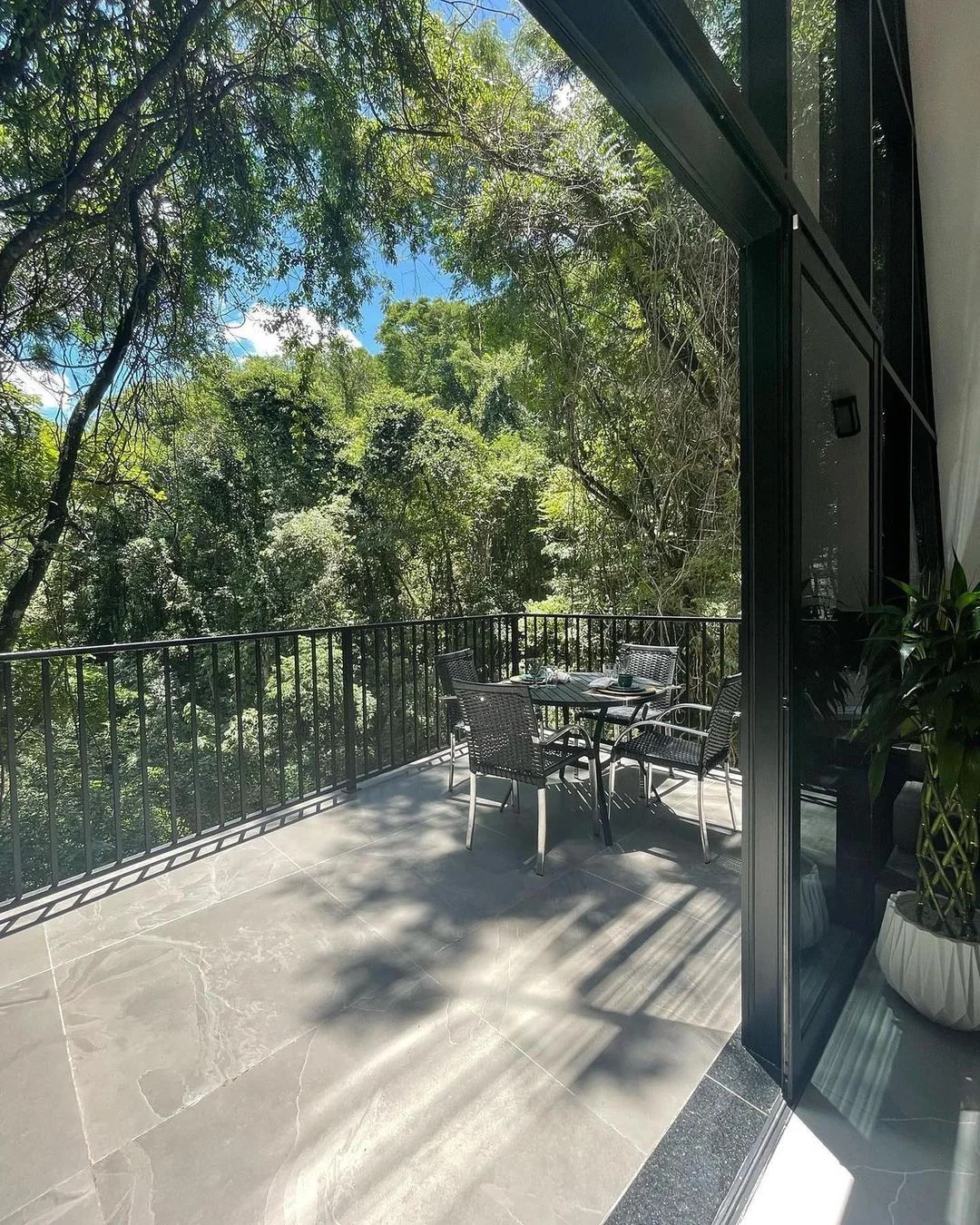 Na área externa, os hóspedes poderão aproveitar a piscina de 8x4m, lareira externa, churrasqueira, trilhas, quadriciclos, piscina natural e cachoeira de uso exclusivo.