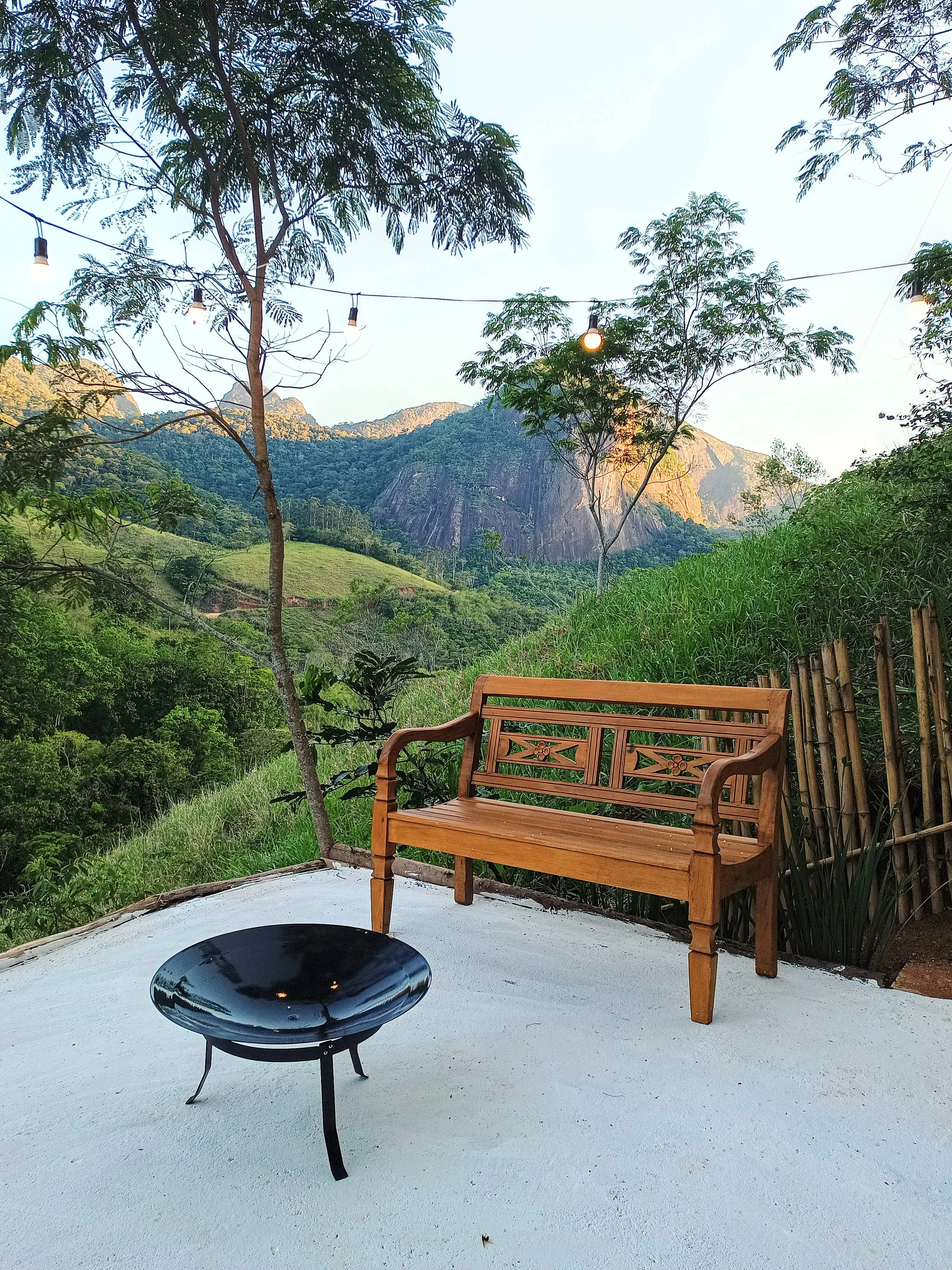 A área da Cabana é de aproximadamente 72 m2 contando com cozinha, sala de estar, sala de jantar, banheiro, quarto no mezanino e deck externo, e está inserida num terreno de 4 mil m2 de área externa com churrasqueira, fire pit, horta orgânica e um deck pertinho de um riacho com pequenas cachoeiras.