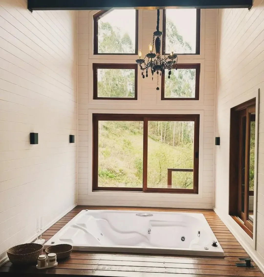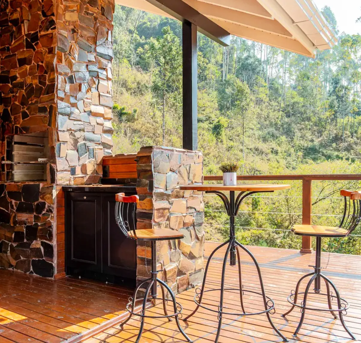 Na área externa, a cabana oferece churrasqueira, varanda aconchegante e um espaço perfeito para relaxar e contemplar o entorno. A estrutura inclui ainda dois chuveiros, enxoval de cama e banho de alto padrão, espuma de banho, rede, além de opções de cestas de café da manhã sob encomenda. Um lugar ideal para viver dias de descanso, romantismo e conexão, cercado pela tranquilidade e beleza da Serra Catarinense.