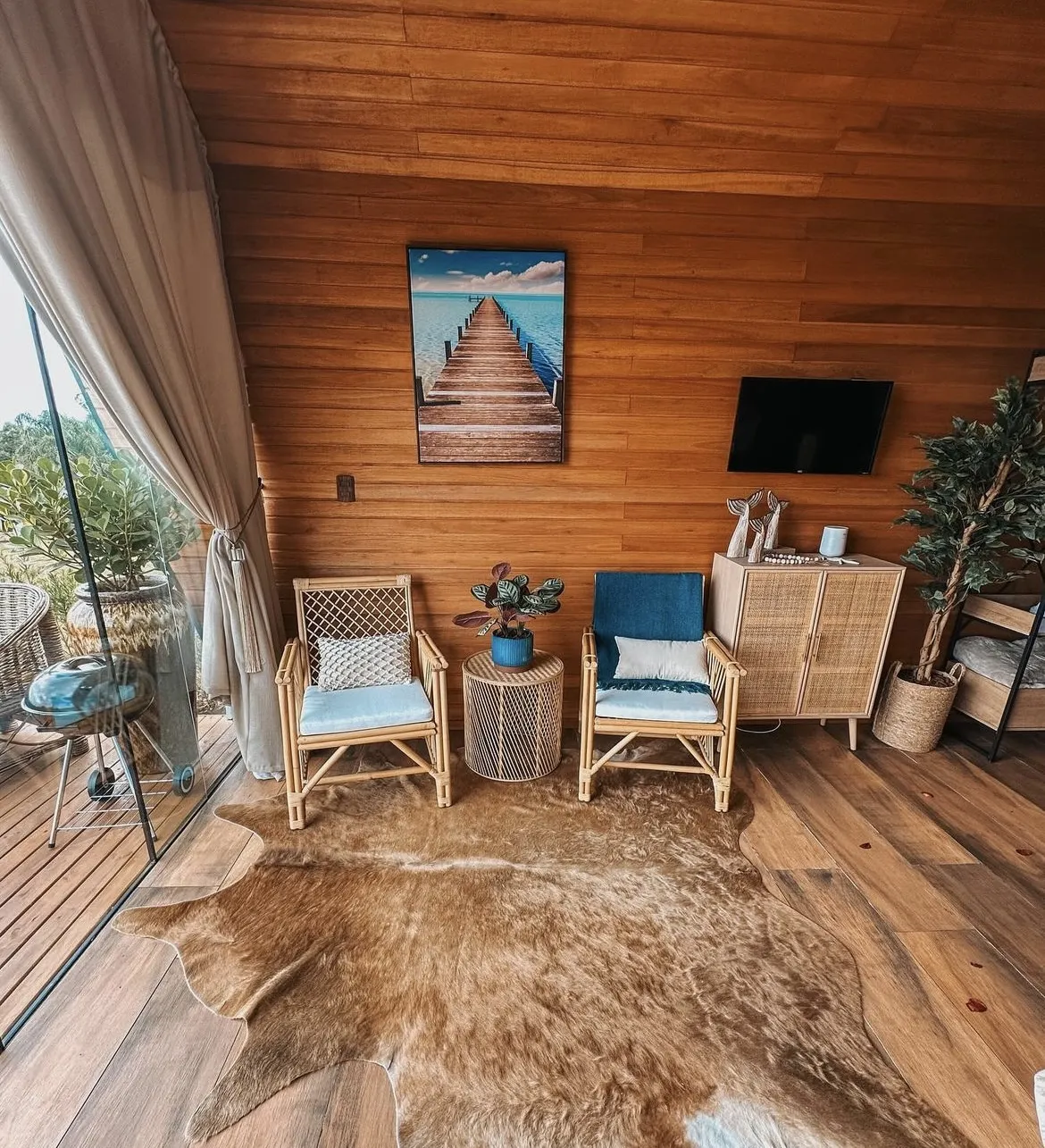 Cabana muito confortável e bem equipada, onde os hóspedes desfrutarão de momentos únicos e inesquecíveis! Possui uma banheira de imersão com uma bela vista para a Lagoa e o horizonte, proporcionando uma hospedagem deliciosa e aconchegante.