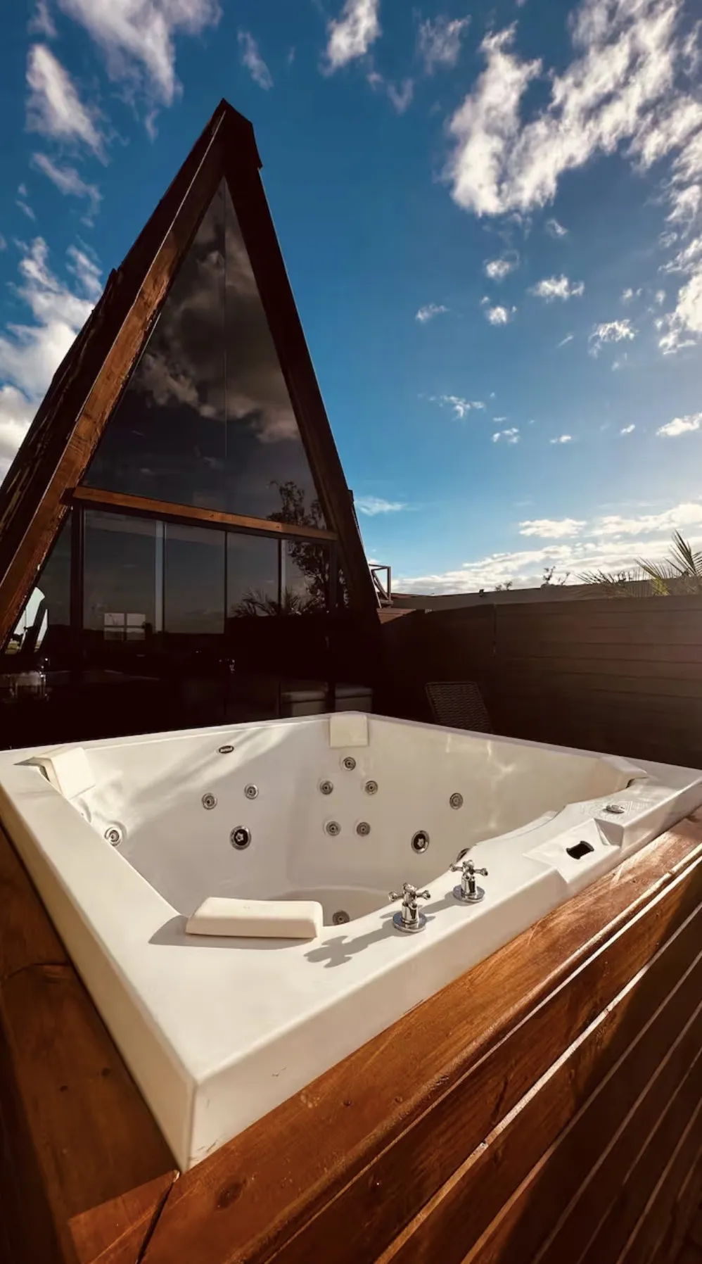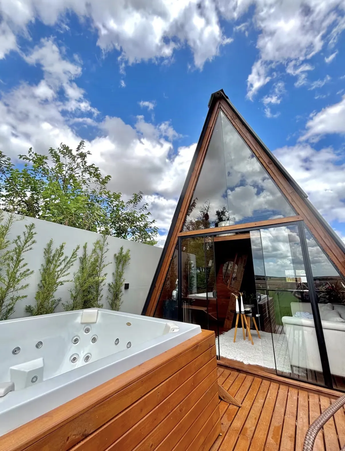 A acomodação conta com jacuzzi privativa, deck exclusivo e decoração rústica e elegante, além de detalhes pensados para proporcionar uma experiência única a dois. A proposta é transformar cada estadia em um momento marcante, com atmosfera envolvente, conforto e total discrição.