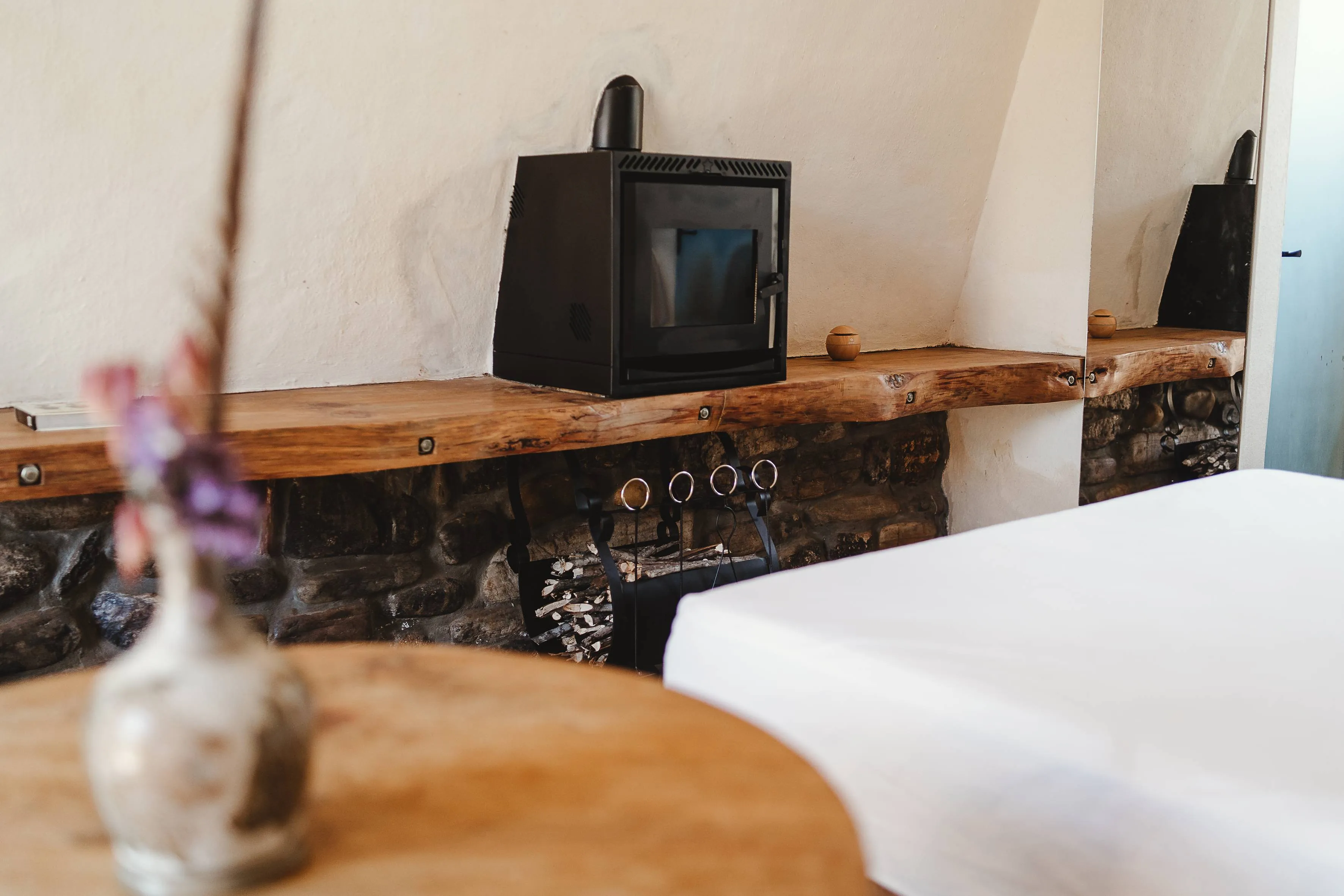 Totalmente off-grid, a cabana oferece energia solar, saneamento ecológico, internet, cozinha equipada, frigobar e lareira, garantindo conforto sem abrir mão da sustentabilidade.