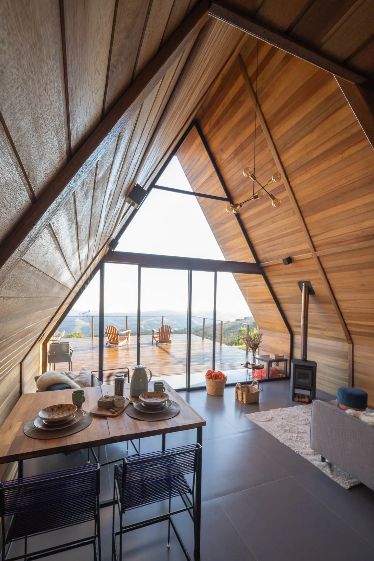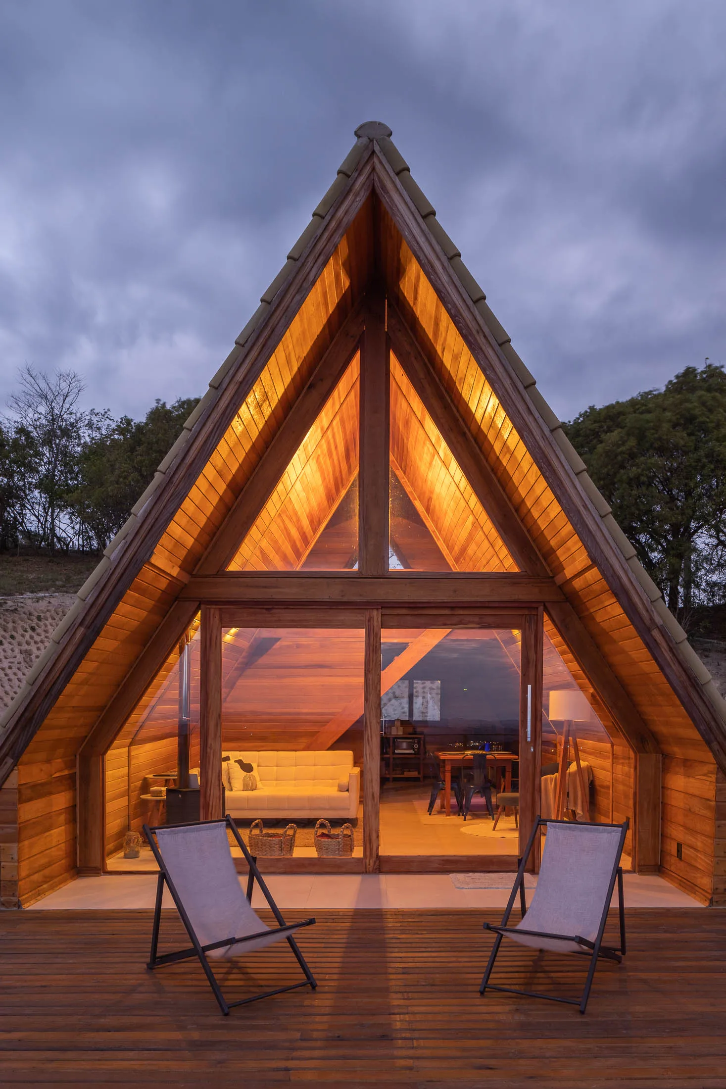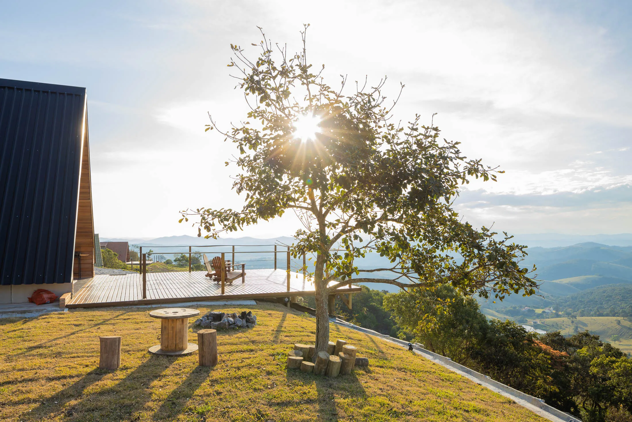 Um refúgio na Serra Bocaina, o espaço está localizado dentro de um condomínio de chácaras, com fácil acesso da estrada que liga Cunha à Paraty. Está a 10km do centro de Cunha. As cabanas foram construídas na parte mais alta do terreno, com vista para alguns pontos da Serra da Mantiqueira, como a Serra Fina, Pico dos Marins e Pico Itaguaré. Os hóspedes poderão caminhar livremente pelo terreno e explorar a paisagem. As cabanas são estilo A-Frame e super aconchegantes. No quarto há uma cama king size e uma confortável poltrona. Sem contar a sensação de acordar nas nuvens! A cozinha da cabana oferece diversos utensílios para preparar as refeições. A cabana possui calefator na sala, além de uma mesa de jantar e sofá-cama. Na área externa, os hóspedes poderão descansar na rede ou tomar um vinho ao lado da lareira de chão.