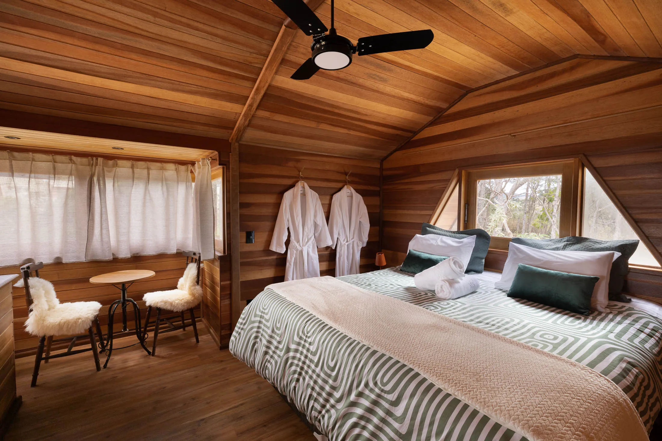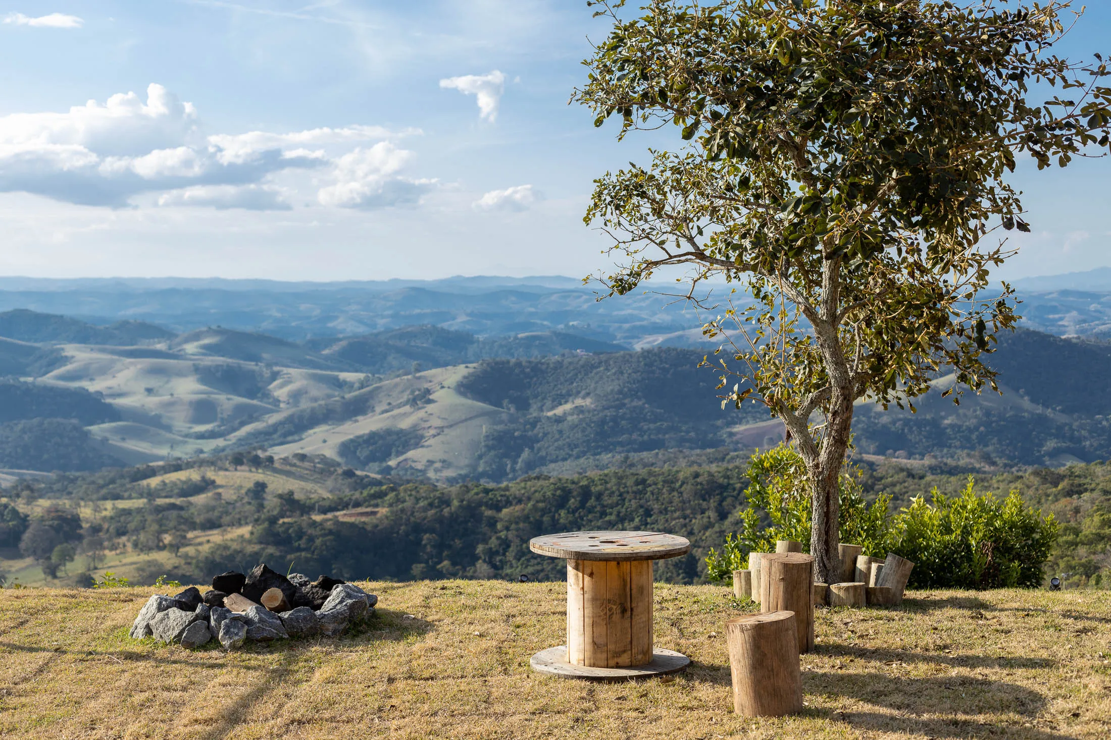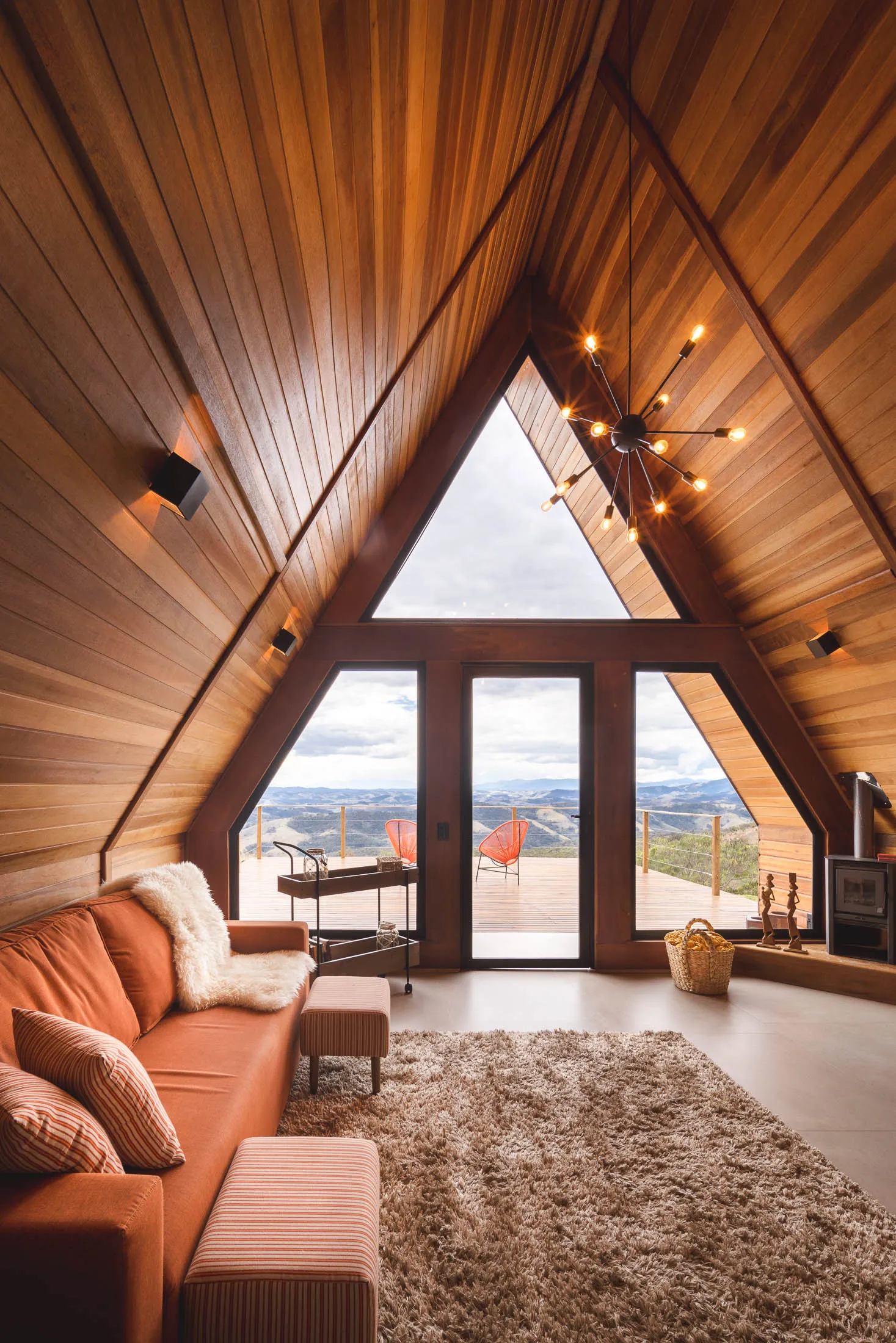 Um refúgio na Serra Bocaina, o espaço está localizado dentro de um condomínio de chácaras, com fácil acesso da estrada que liga Cunha à Paraty. Está a 10km do centro de Cunha. As cabanas foram construídas na parte mais alta do terreno, com vista para alguns pontos da Serra da Mantiqueira, como a Serra Fina, Pico dos Marins e Pico Itaguaré. Os hóspedes poderão caminhar livremente pelo terreno e explorar a paisagem. As cabanas são estilo A-Frame e super aconchegantes. No quarto há uma cama king size e uma confortável poltrona. Sem contar a sensação de acordar nas nuvens! A cozinha da cabana oferece diversos utensílios para preparar as refeições. A cabana possui calefator na sala, além de uma mesa de jantar e sofá-cama. Na área externa, os hóspedes poderão descansar na rede ou tomar um vinho ao lado da lareira de chão.
