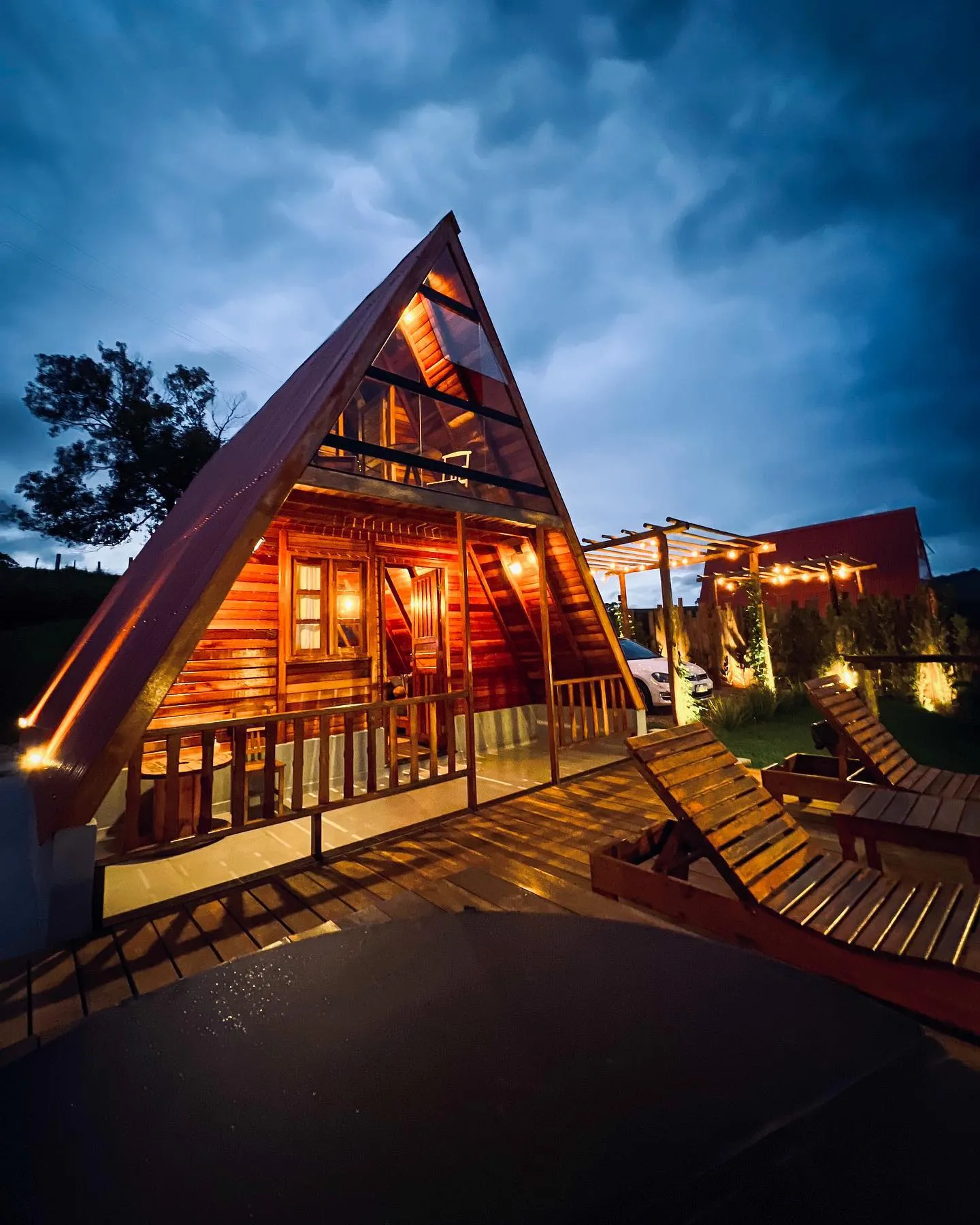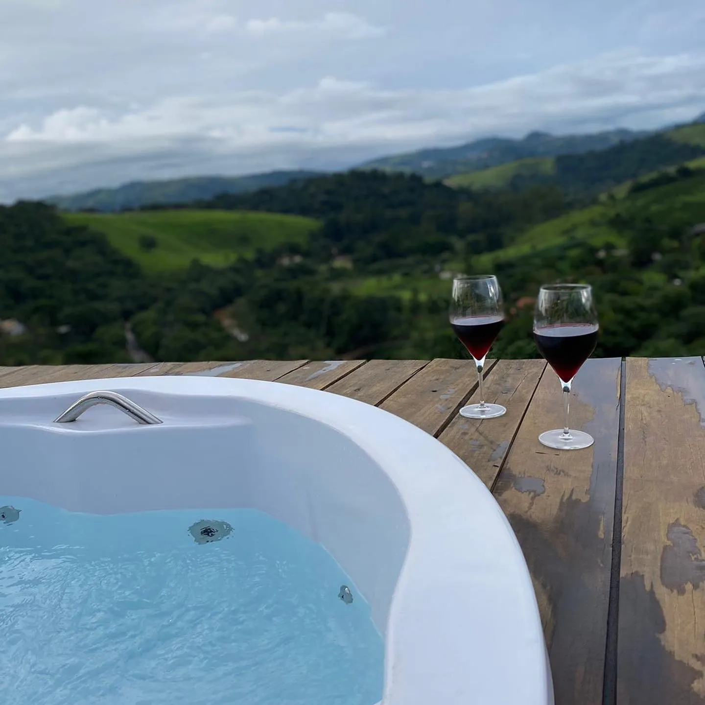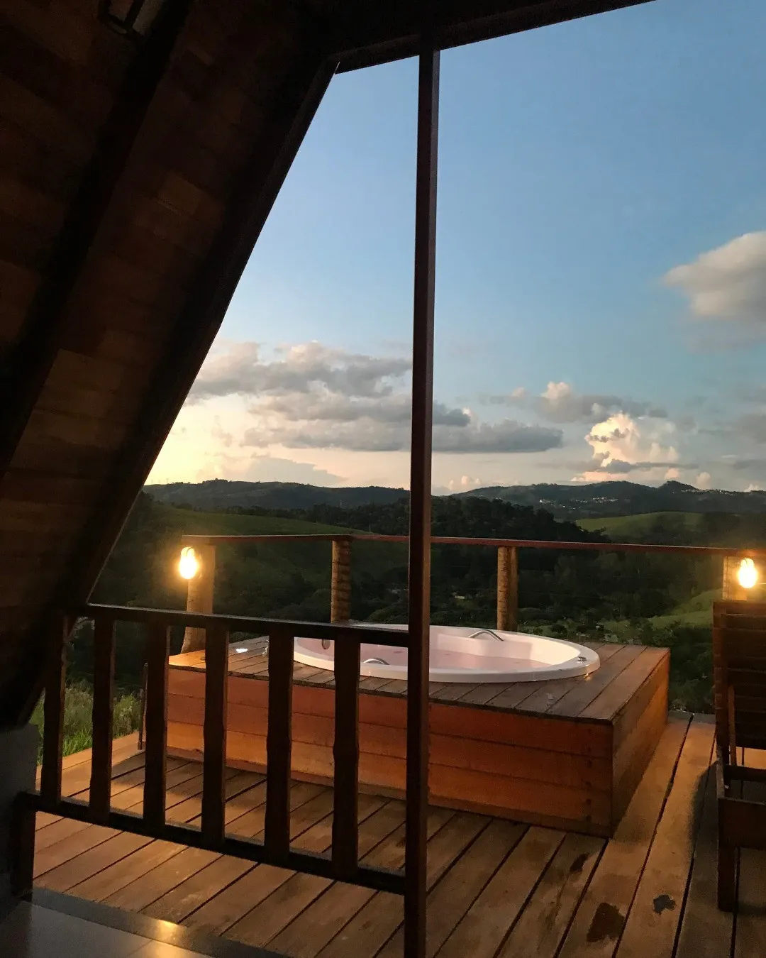 Cabana localizada no Morro de Santo Agostinho em Serra Negra, SP. As cabanas contam com fogão elétrico, geladeira, jacuzzi na área externa, ar condicionado, cama queen size, TV, fogueira individual, Wi-Fi e muito mais!