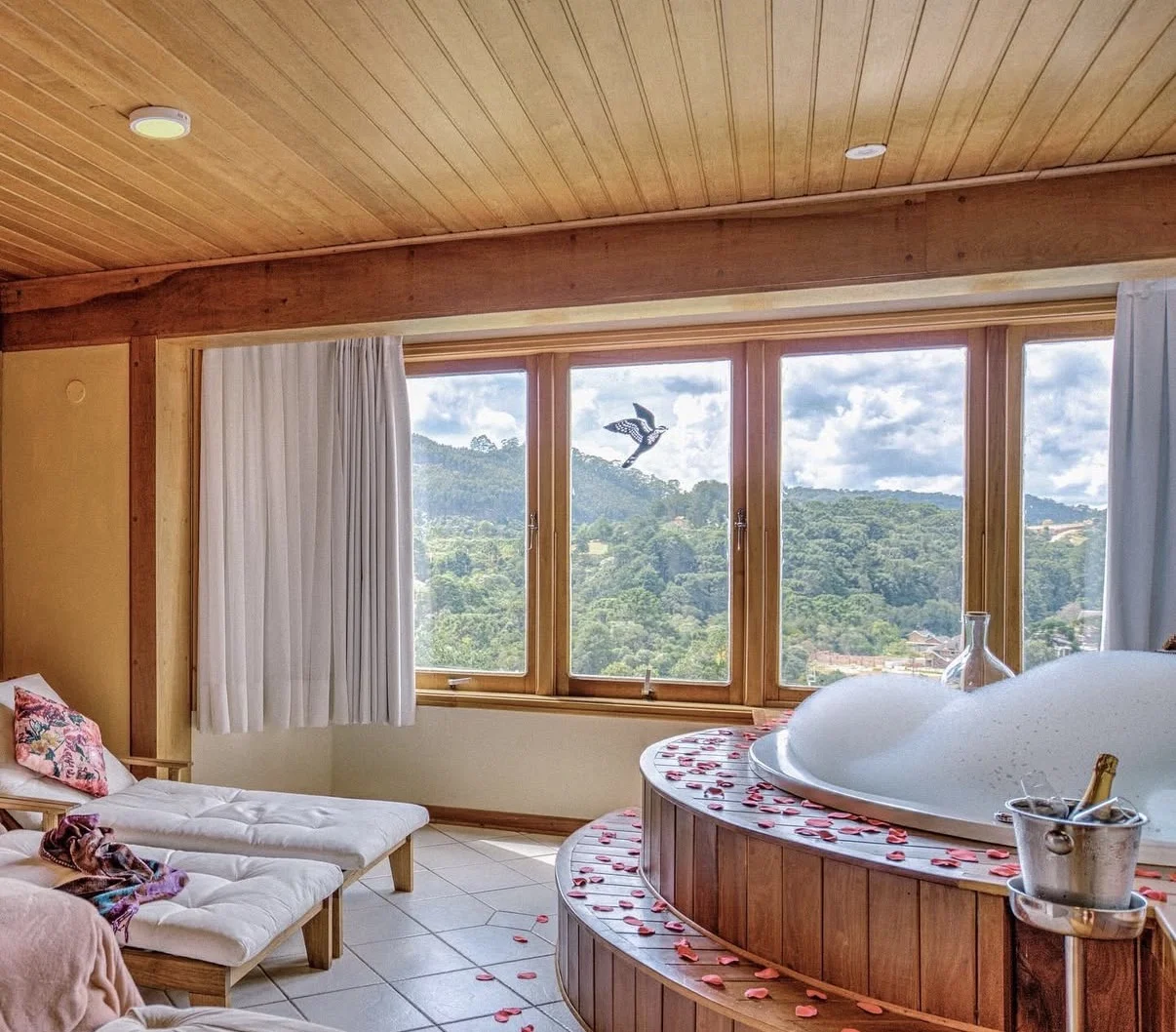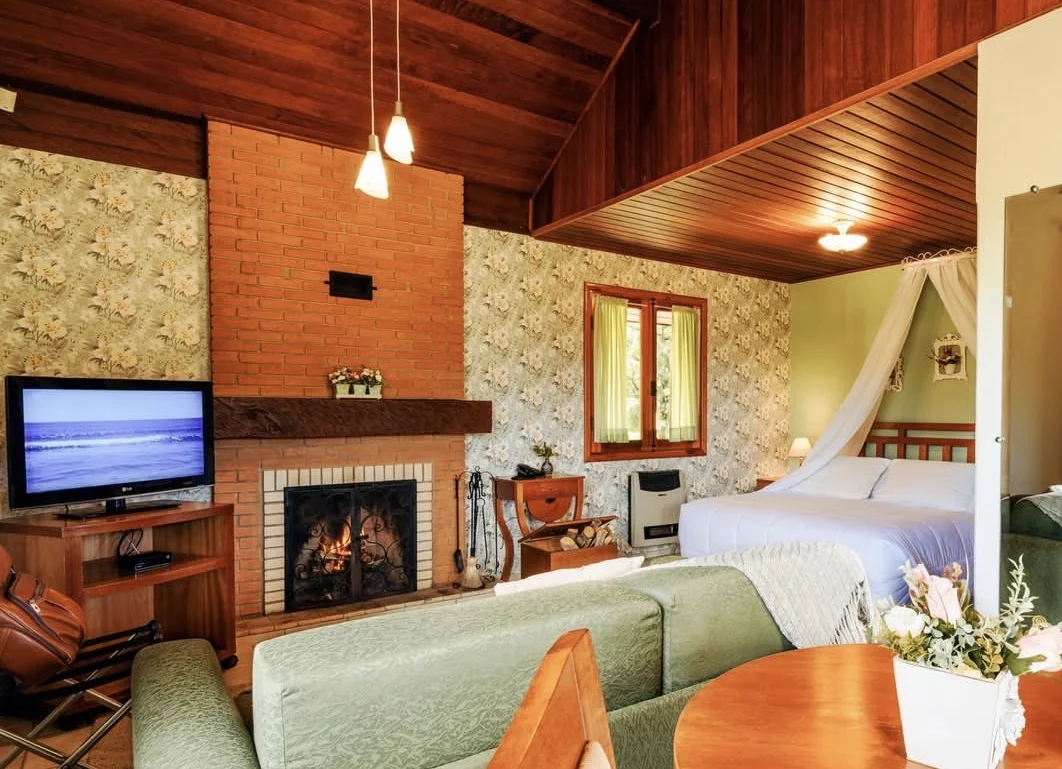 Área privativa de 10.000m² com chalés e suítes de alvenaria, muito bem decorados e com vista para o jardim e para as montanhas da serra, tornando a hospedagem em Monte Verde uma experiência única, um clima de paz e tranquilidade.