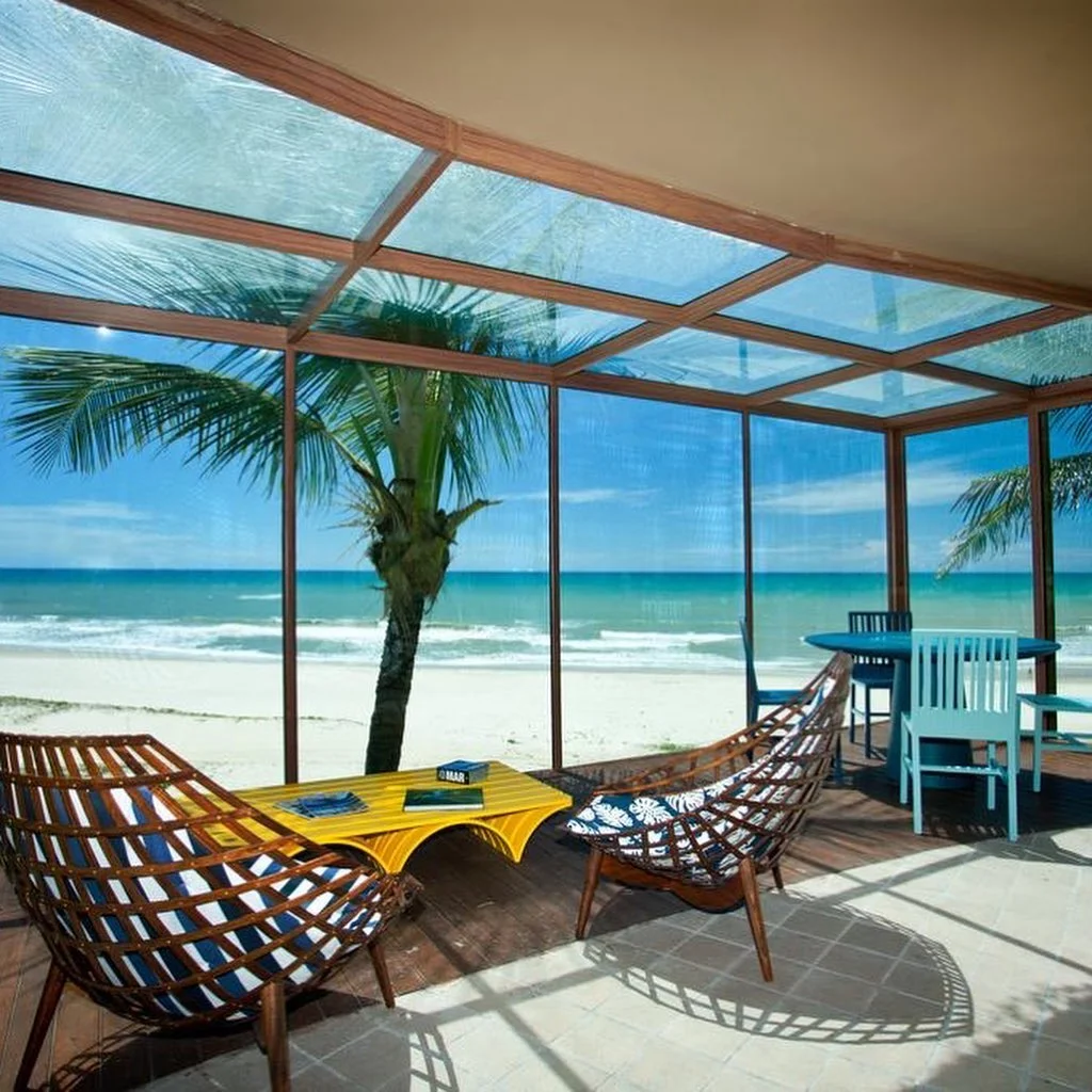 São 35 charmosas acomodações, entre suítes, lofts e bangalôs, todas com vista para o mar, amenities, lençóis com fios importados, frigobar retrô, máquina de café expresso, sandálias personalizadas, ar condicionado, TV LCD Full HD 42” com canais por assinatura, camas king size e outros mimos para uma experiência única com o conforto e o bem-estar.