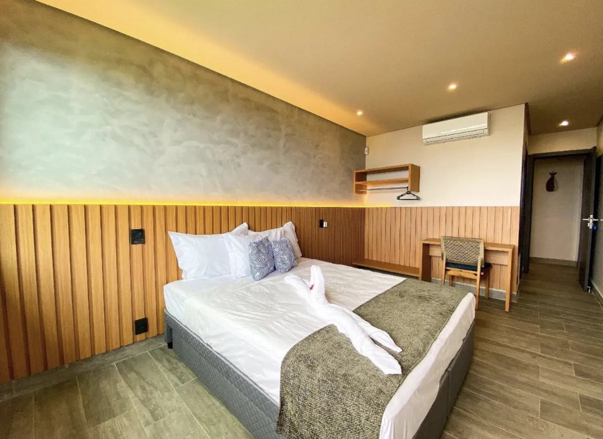 Ar condicionado Secador de cabelo TV a cabo / Smart TV Jacuzzi / Ofurô / Banheira Coberta Frigobar Lareira Máquina de Café Enxoval de Luxo (+ Roupão e Pantufa) Sauna Cozinha Estação de trabalho (mesa e cadeira) Piscina Aquecida ou climatizada Borda Infinita Coberta