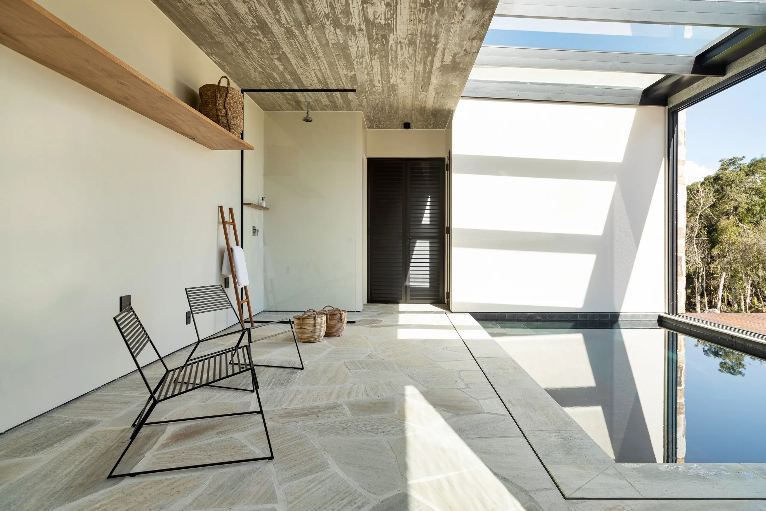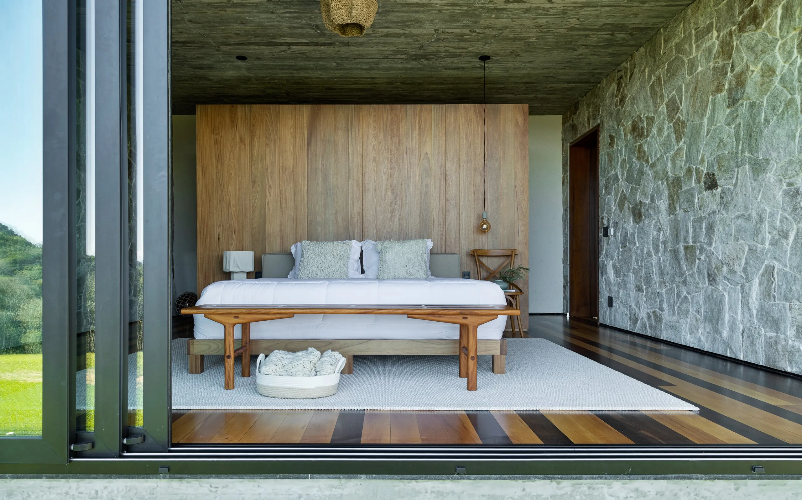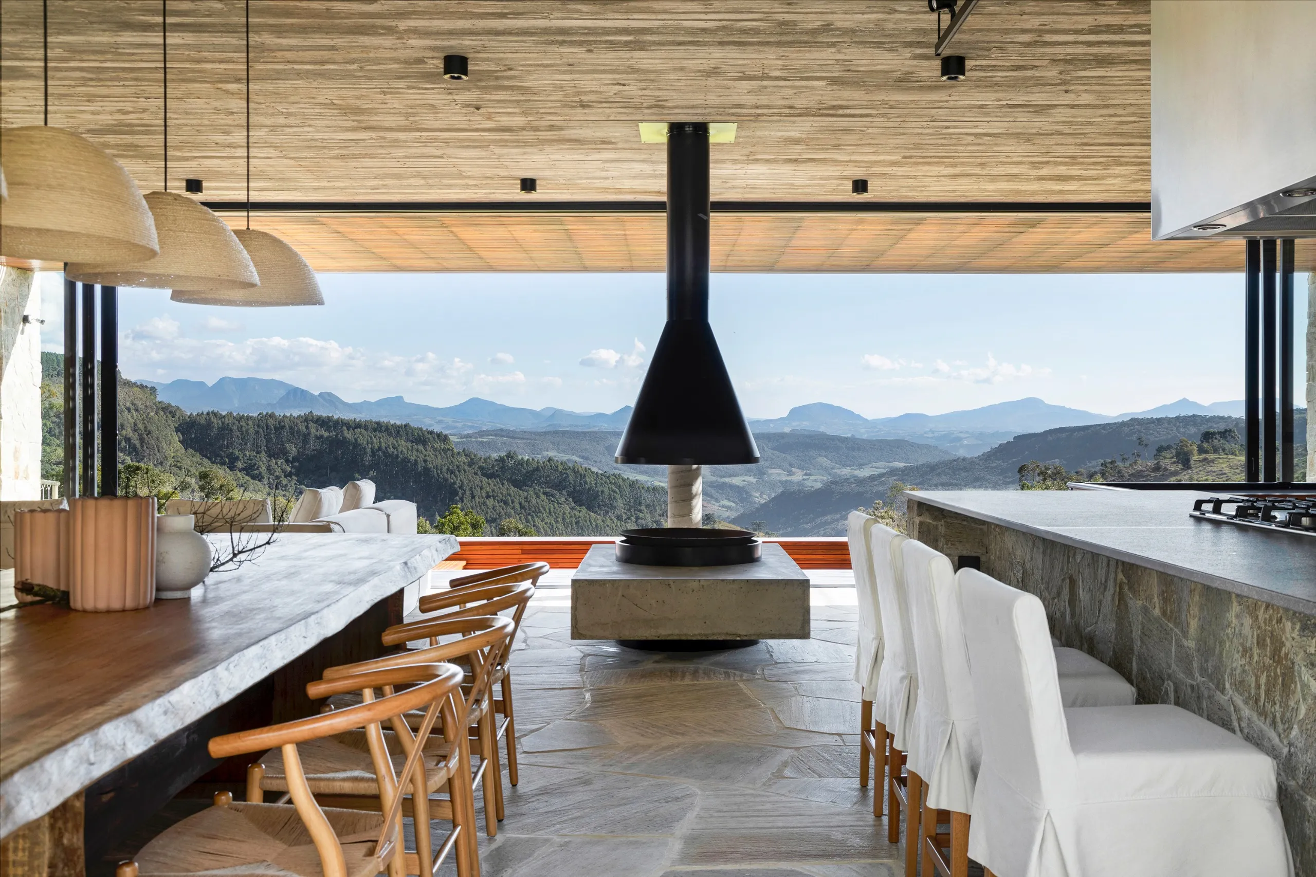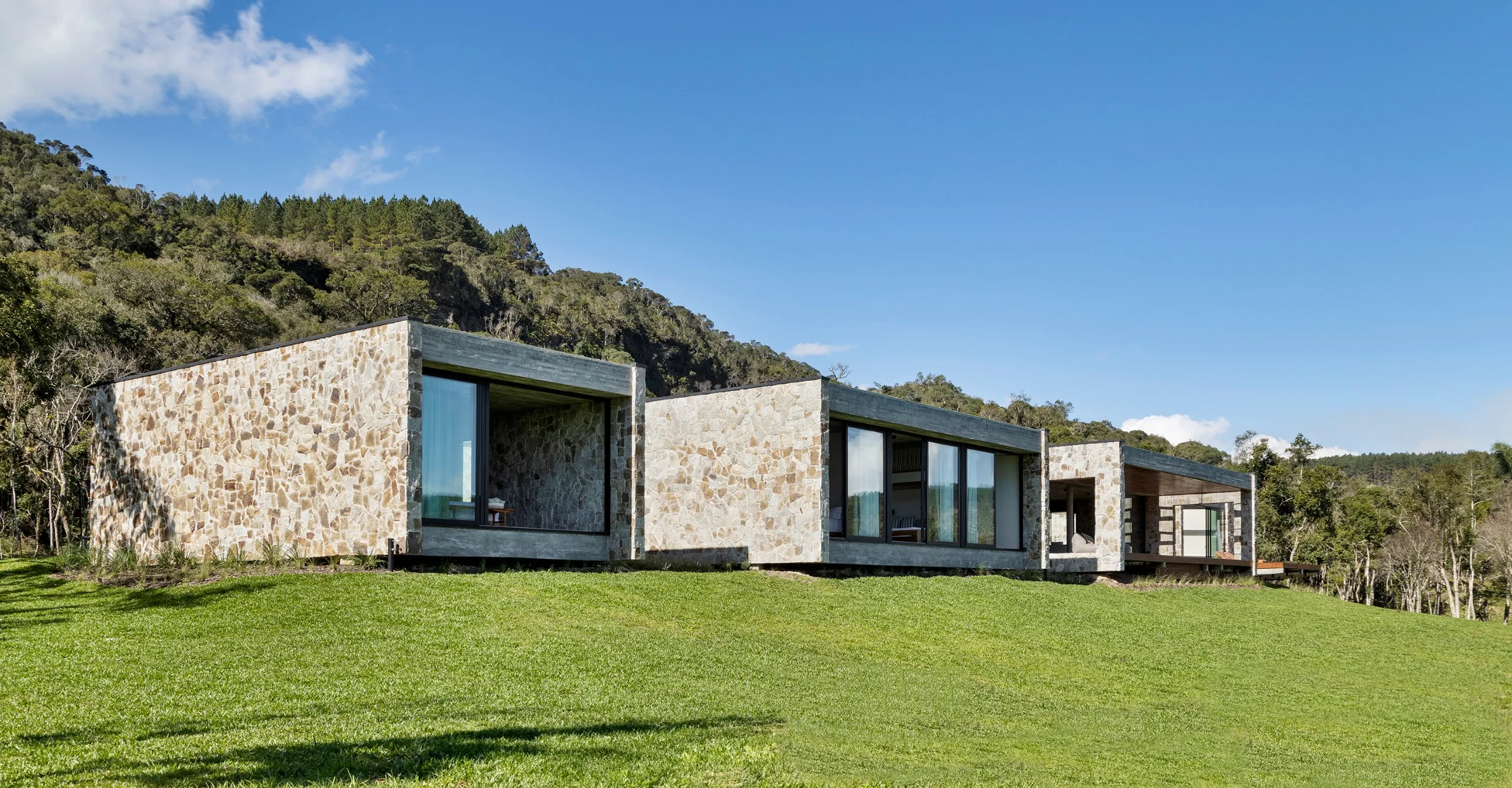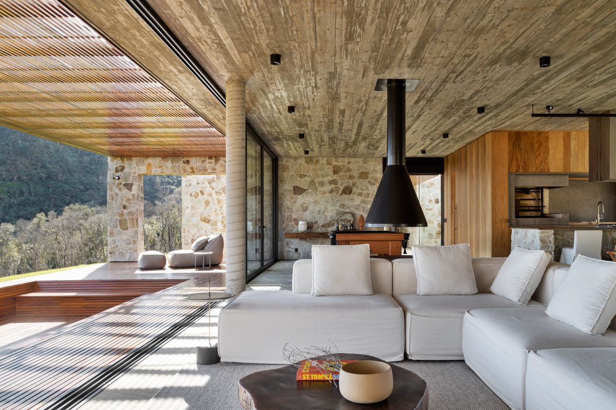 A Casa Entre Peraus está localizada em uma área rodeada por nascentes que formam rios e cachoeiras, oferecendo um refúgio em meio à natureza. Com uma arquitetura contemporânea, a casa “flutua” sobre um platô, proporcionando vistas deslumbrantes para o verde e o horizonte. Seu amplo living e área gourmet se integram perfeitamente com o ambiente ao redor, criando um espaço ideal para relaxamento e contemplação. Este é o local perfeito para desfrutar da serenidade e beleza naturais, oferecendo uma experiência única em meio ao verde.
