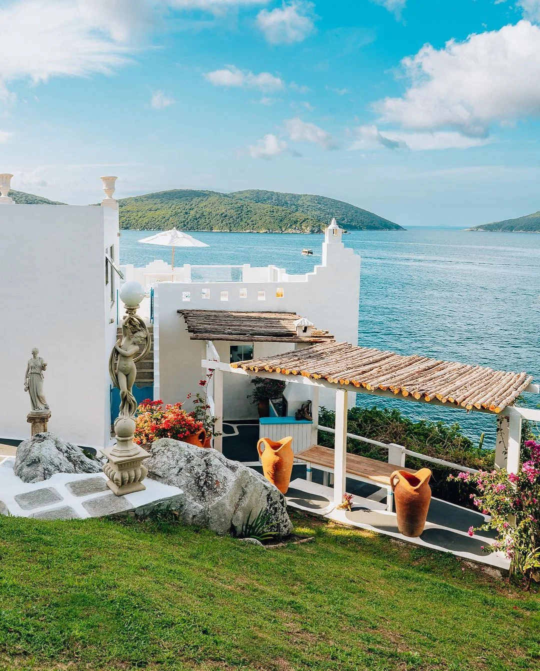 A casa está localizada na grande reserva natural na beira do mar no Pontal do Atalaia em Arraial do Cabo em uma área onde se pode participar de atividades como trilhas, mergulho ou ainda fazer passeios incríveis de barco. Situada em um lugar incrível e proporcionando uma experiência única, a casa possui 2 quartos, 3 banheiros e uma varanda térrea com vista do jardim e mar. Acomodações com uma vista de tirar o fôlego! A primeira casa beira mar do condomínio, inspirada na Grécia, é famosa por proporcionar o nascer/pôr do sol mais lindo do RJ, onde a sua fama precede, proporcionando um ângulo único de fotos. A casa fica dentro de uma reserva natural e por isso devem ao máximo respeitar a natureza desse lugar tão lindo.