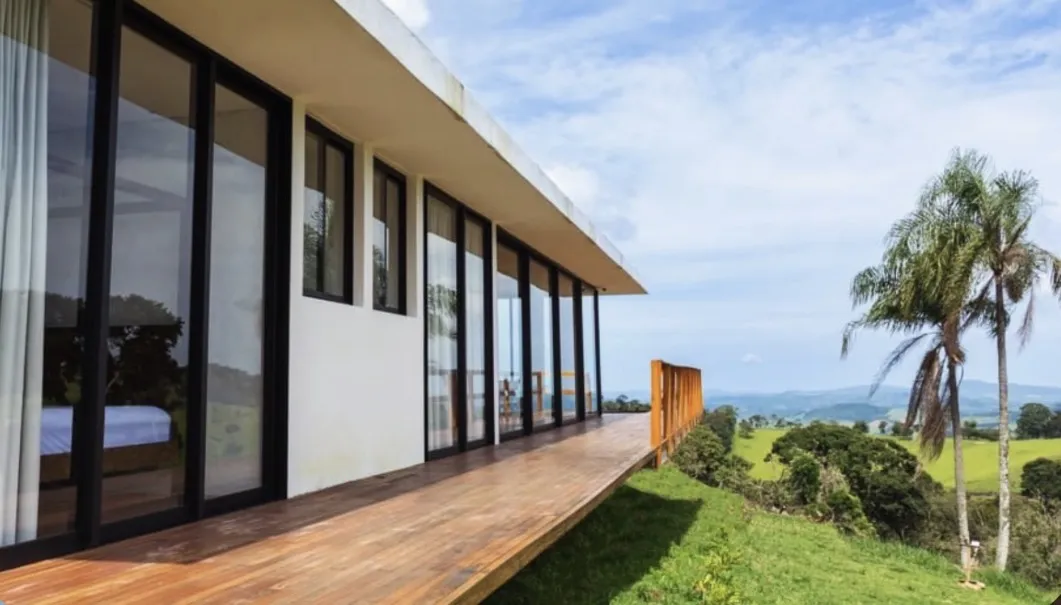 Em meio às montanhas de Bueno Brandão, a casa de campo envidraçada convida ao descanso genuíno e à contemplação da paisagem rural. Cercada pelo verde, integra natureza e arquitetura por meio de amplas superfícies de vidro que permitem que a luz natural e a vista transformem os ambientes ao longo do dia, criando uma atmosfera acolhedora e inspiradora.