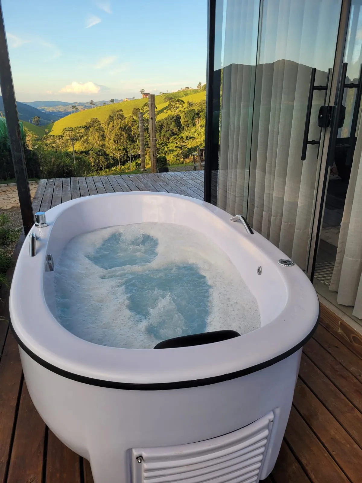 A casa conta com amplo deck com banheira de hidromassagem, com linda vista para as montanhas. Cozinha completa e uma aconchegante sala de estar.