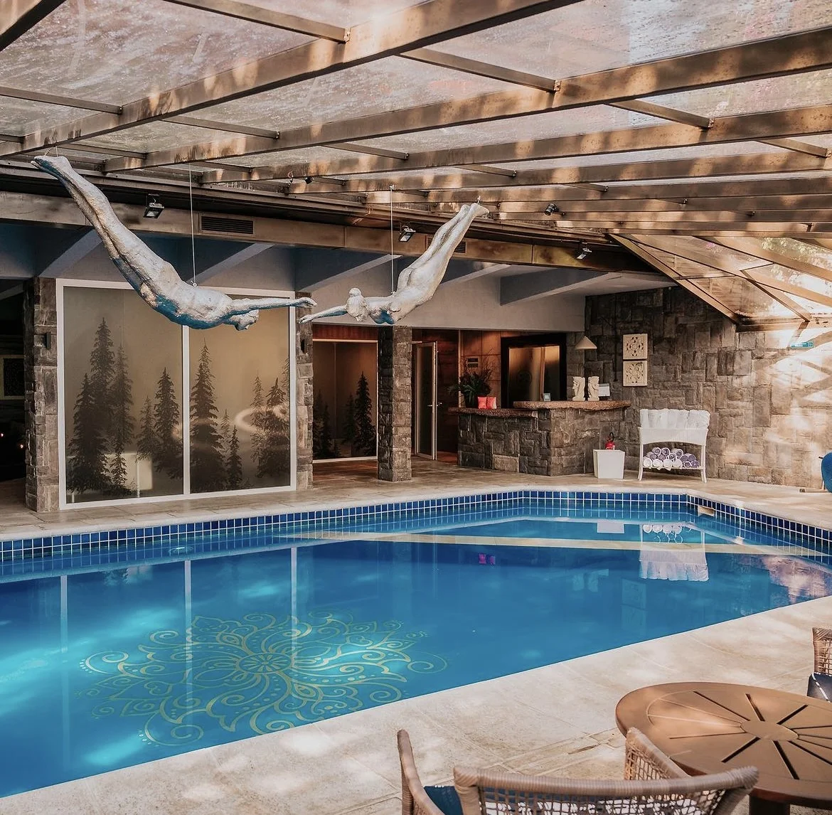 Ar condicionado Secador de cabelo TV a cabo / Smart TV Jacuzzi / Ofurô / Banheira Coberta Frigobar Lareira Máquina de Café Enxoval de Luxo (+ Roupão e Pantufa) Sauna Cozinha Estação de trabalho (mesa e cadeira) Piscina Aquecida ou climatizada Borda Infinita Coberta