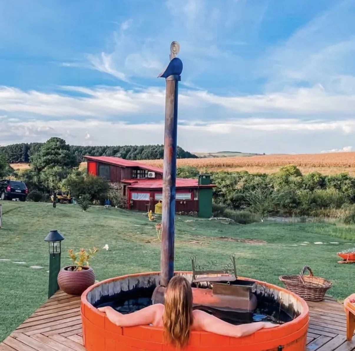 Localizada em São Francisco de Paula, a Casa no Campo reúne charme rústico e conforto moderno em meio à natureza. As cabanas foram projetadas com lareira, banheira de hidromassagem em grande parte das acomodações, além de varandas com vista para o rio e campos, criando o cenário ideal para momentos de relaxamento.