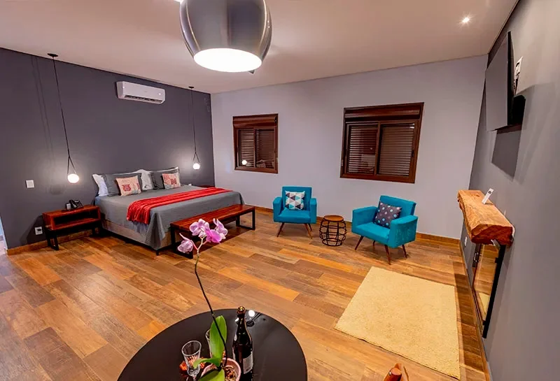 Ar condicionado Secador de cabelo TV a cabo / Smart TV Jacuzzi / Ofurô / Banheira Coberta Frigobar Lareira Máquina de Café Enxoval de Luxo (+ Roupão e Pantufa) Sauna Cozinha Estação de trabalho (mesa e cadeira) Piscina Aquecida ou climatizada Borda Infinita Coberta