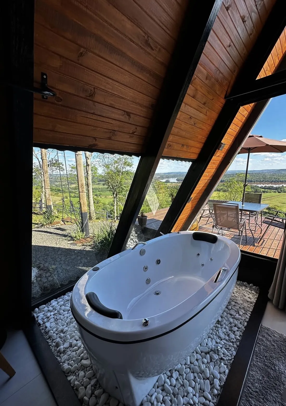 Ar condicionado Secador de cabelo TV a cabo / Smart TV Jacuzzi / Ofurô / Banheira Coberta Frigobar Lareira Máquina de Café Enxoval de Luxo (+ Roupão e Pantufa) Sauna Cozinha Estação de trabalho (mesa e cadeira) Piscina Aquecida ou climatizada Borda Infinita Coberta