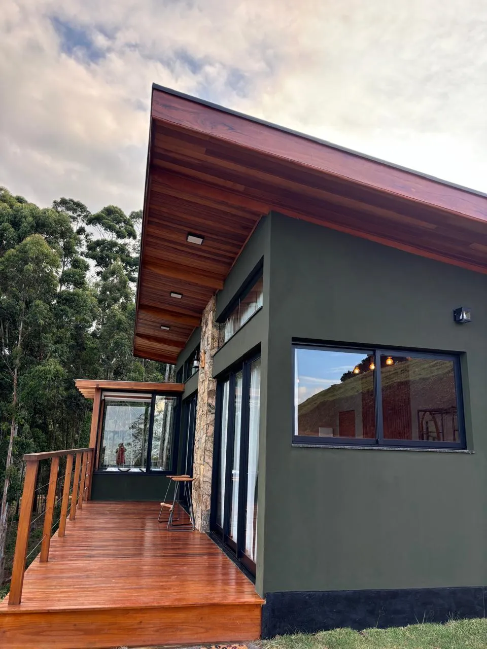 ● Deck privativo com vista panorâmica para a paisagem da serra — um convite ao descanso ao ar livre.