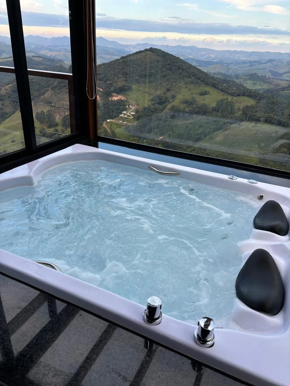 ● Banheira de hidromassagem dupla com cromoterapia e vista para a natureza;