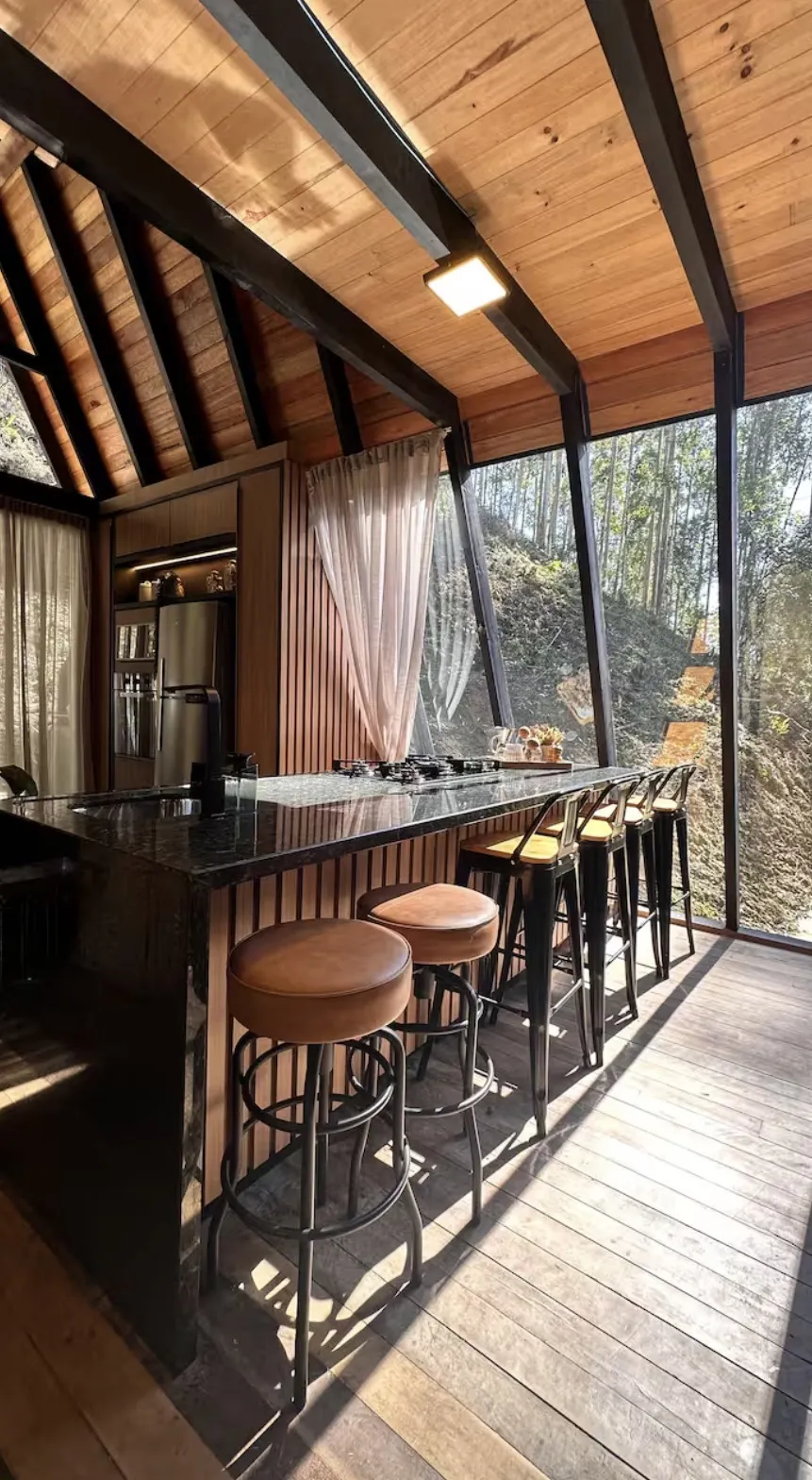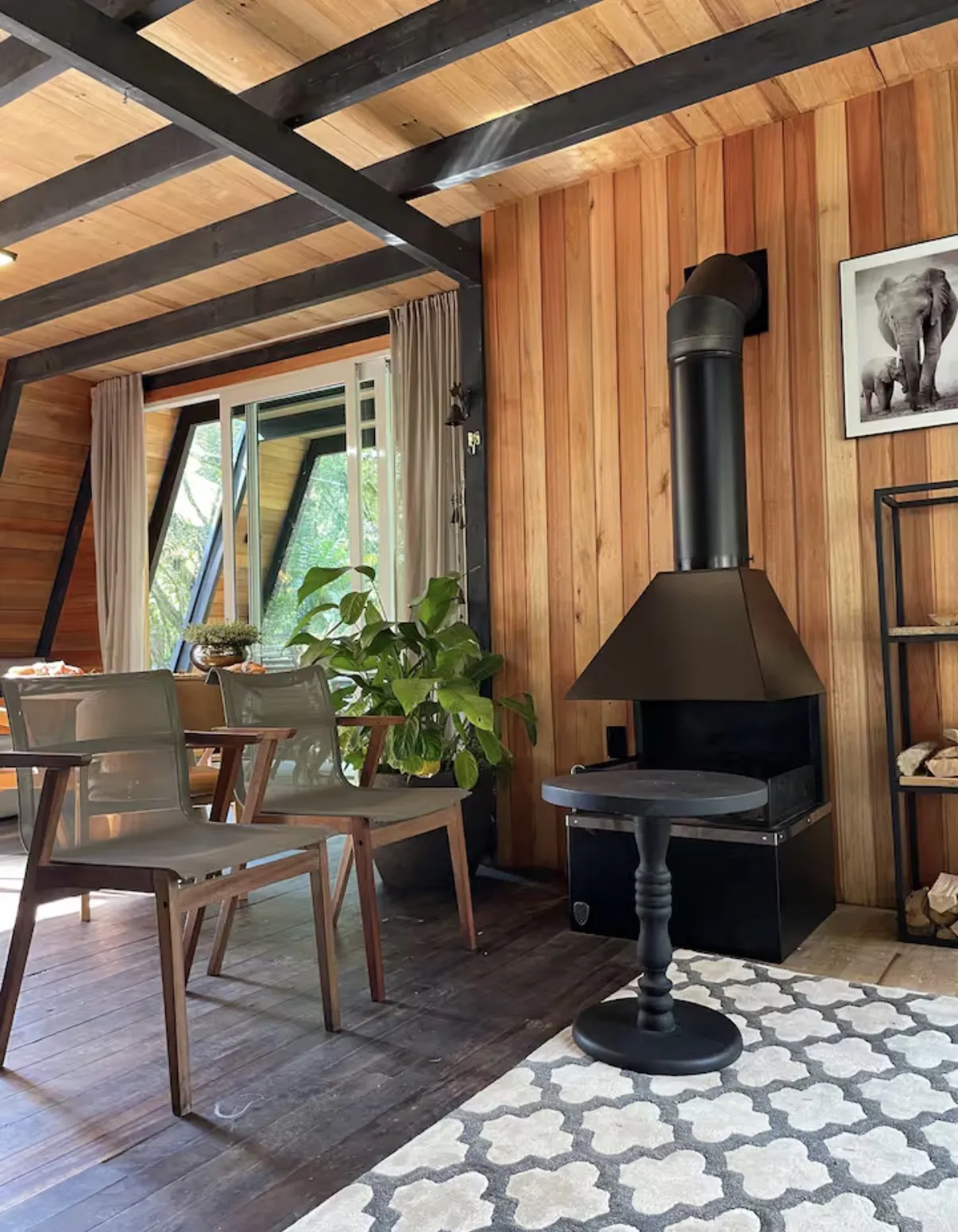Com lareira, hidromassagem, fogueira de chão e uma vista incrível para as montanhas e cachoeiras da região, a hospedagem oferece uma experiência completa de relaxamento. Cada detalhe foi pensado para proporcionar aconchego, tranquilidade e bem-estar em meio ao verde.