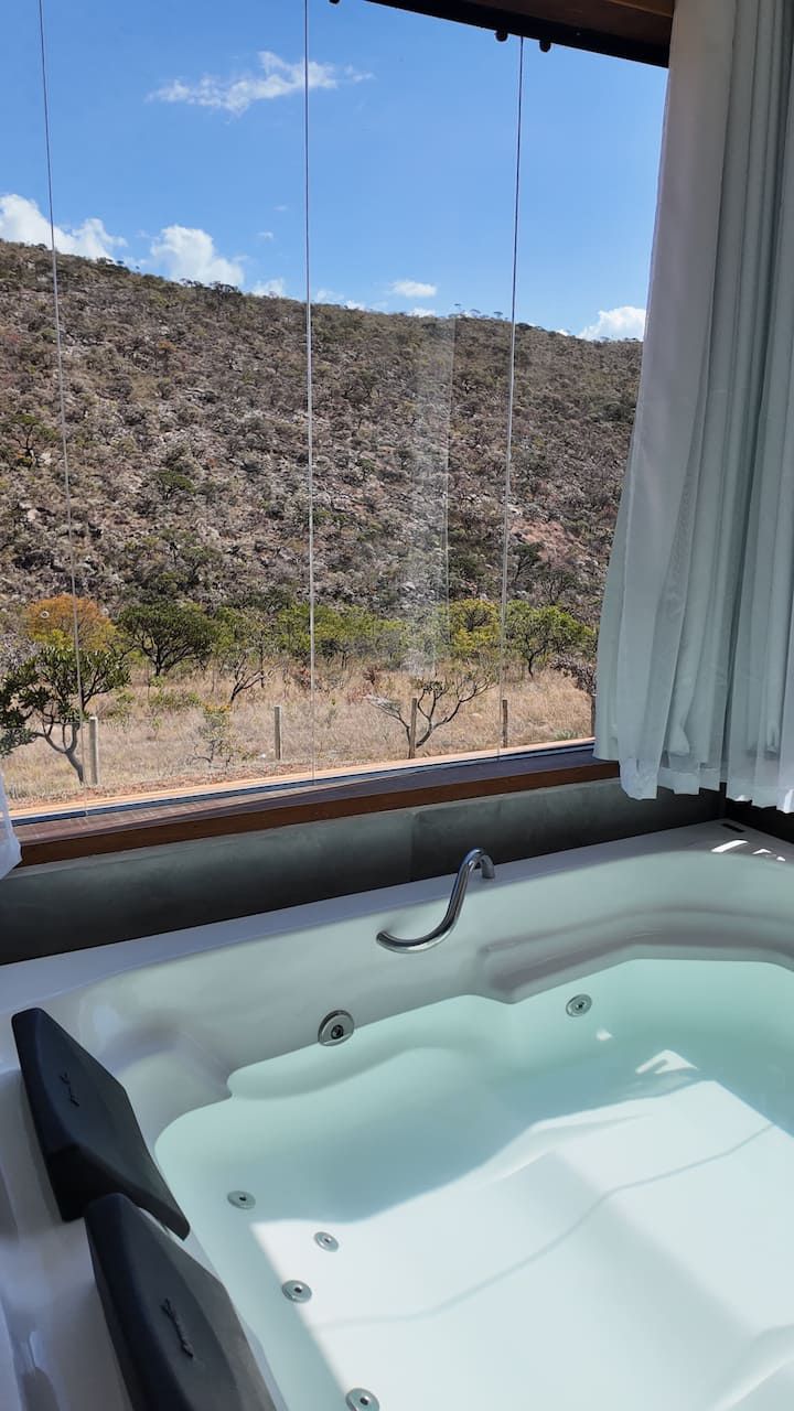 O design combina elementos contemporâneos e rústicos de forma equilibrada, resultando em espaços elegantes e funcionais, pensados para proporcionar bem-estar e contemplação. A vista ampla para as montanhas e o cuidado presente em cada detalhe transformam a estada em uma experiência sensorial marcante, onde o silêncio, a luz natural e o horizonte compõem um refúgio memorável, feito para quem valoriza privacidade, exclusividade, conforto e harmonia com a natureza. Desconecte-se para se reconectar