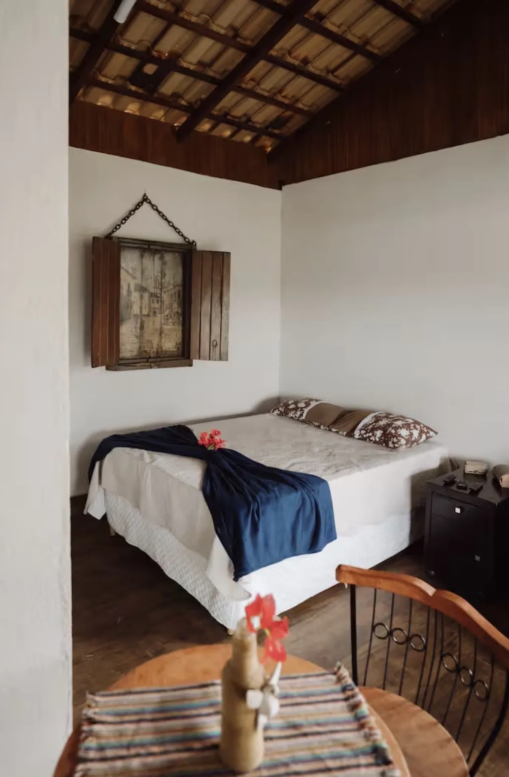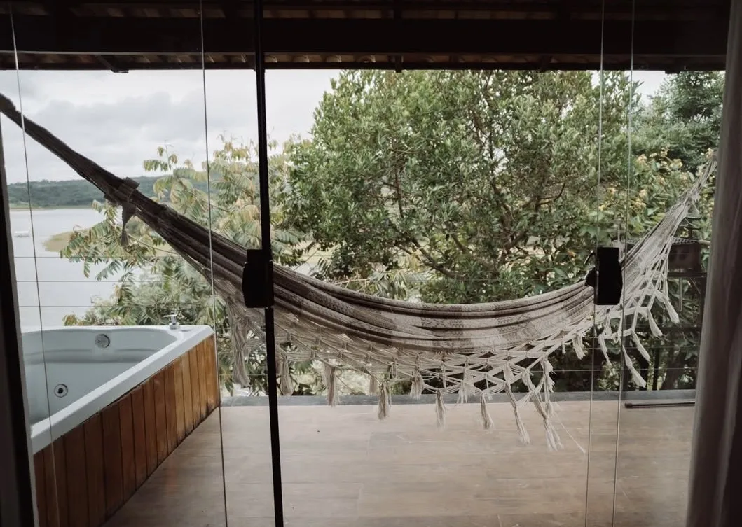 O Chalé Vista Lago é um refúgio cercado por natureza, ideal para casais ou famílias que buscam descanso, tranquilidade e conforto em ambiente acolhedor. A estrutura conta com uma suíte equipada com cama de casal e sofá-cama, acomodando até quatro hóspedes, além de varanda privativa e hidromassagem exclusiva. O cenário verde ao redor reforça a atmosfera de paz e desaceleração, criando uma experiência voltada ao bem-estar e à conexão com o entorno natural.