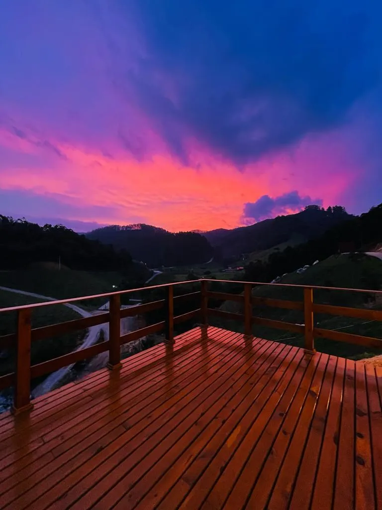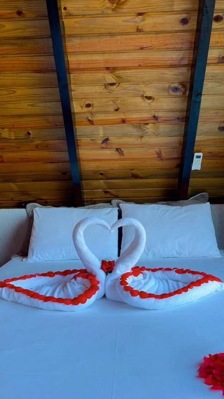 O chalé 2, assim como chalé 1, também conta com ampla variedade de equipamentos e utensílios de cozinha, além de roupas de cama e uma linda vista do deck, tendo na parte interna do chalé uma banheira de hidromassagem aquecida! Possui um ambiente único, com 1 cama de casal!