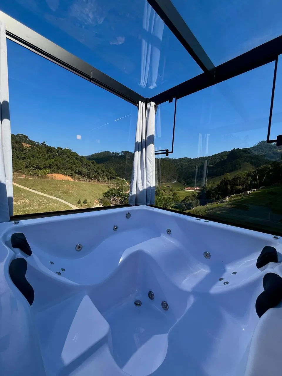 Ar condicionado Secador de cabelo TV a cabo / Smart TV Jacuzzi / Ofurô / Banheira Coberta Frigobar Lareira Máquina de Café Enxoval de Luxo (+ Roupão e Pantufa) Sauna Cozinha Estação de trabalho (mesa e cadeira) Piscina Aquecida ou climatizada Borda Infinita Coberta