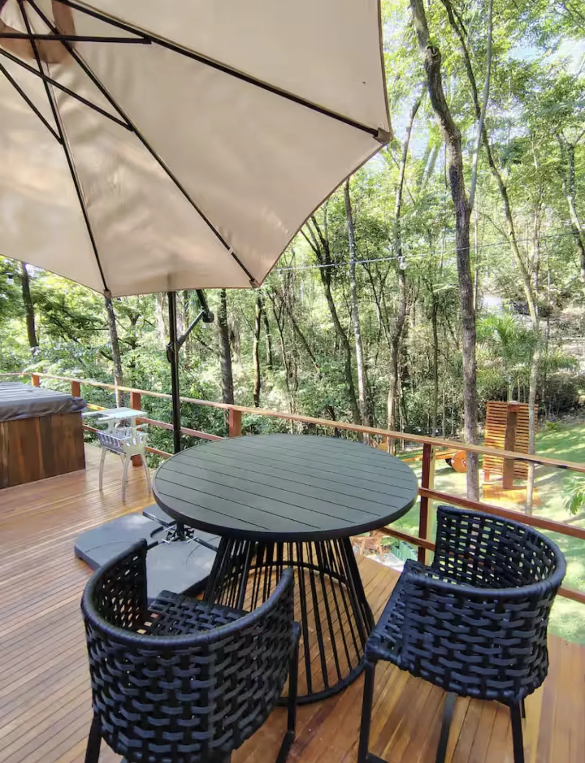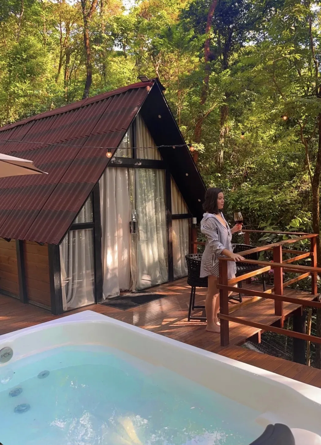 A hidromassagem privativa com vista privilegiada convida a relaxar enquanto o cenário natural completa a sensação de bem-estar. Ideal para escapadas a dois ou dias de descanso absoluto, o espaço proporciona uma estadia única, onde cada detalhe foi pensado para garantir conforto e exclusividade. Reserve e viva essa experiência.