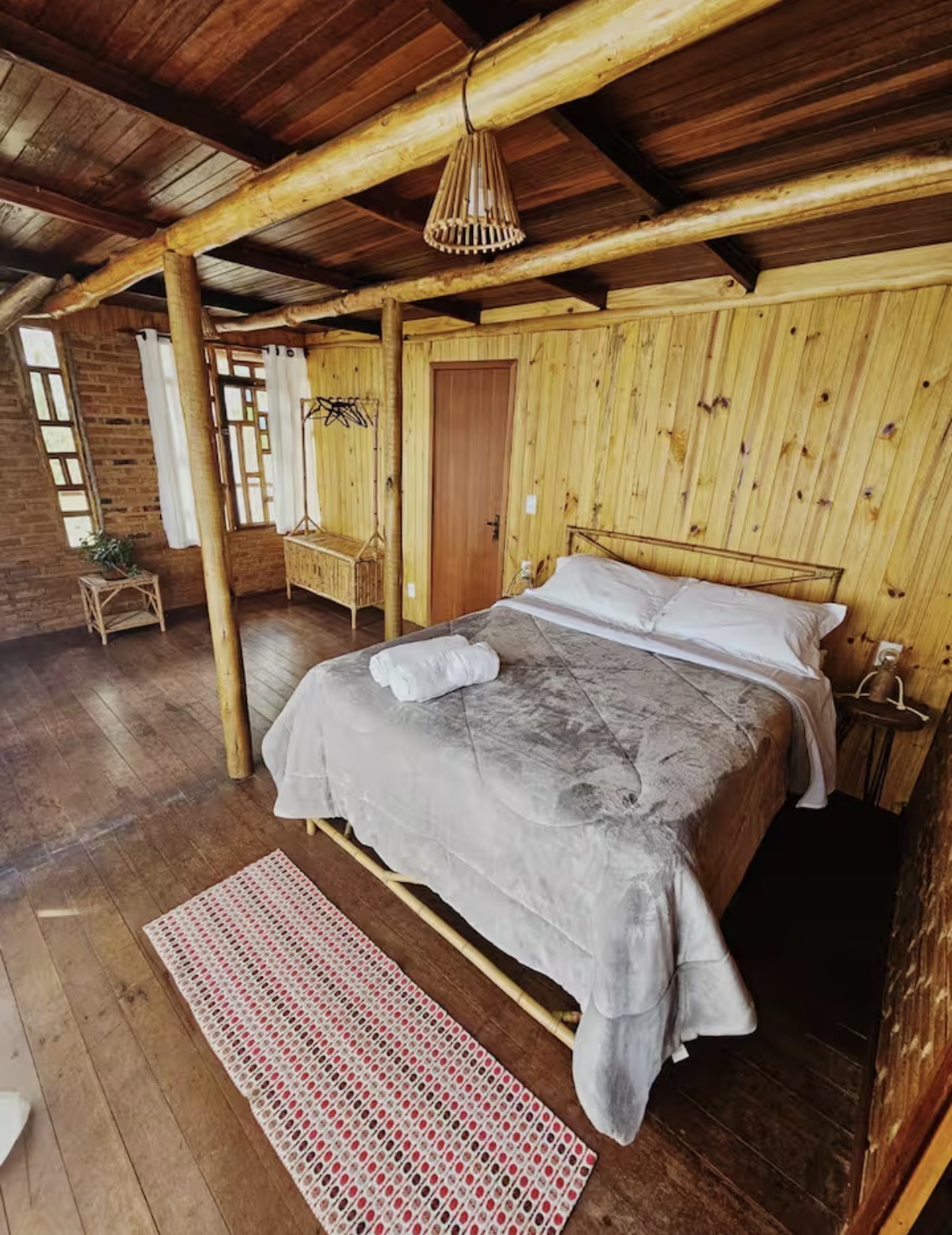 Chalé na montanha, com linda vista, ideal para descansar e curtir a natureza. Pets são bem vindos. O chalé fica dentro do sítio das Tocas, isolado da sede. Estamos localizados no brejal, a cerca de 2:30hs do Rio de Janeiro e a 40 min de Itaipava. Clima agradável, com friozinho a noite, ideal para acender a lareira. O Chalé possui uma suíte, um quarto de casal e um quarto de solteiro, todos no segundo andar do Chalé. O primeiro andar possui sala integrada com a cozinha, lavabo, varanda e piscina