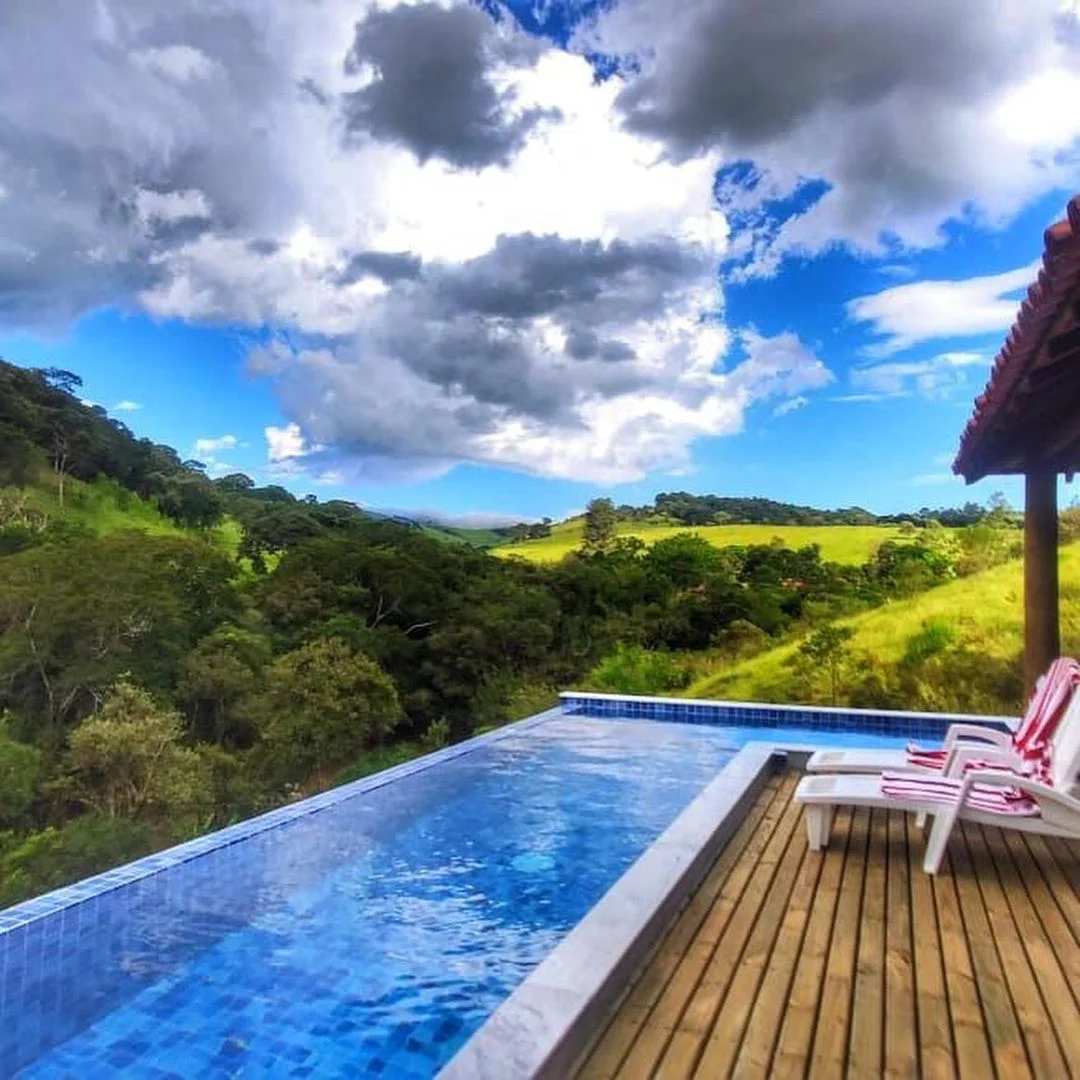 - Piscina particular com praia e borda infinita de frente para cachoeira;