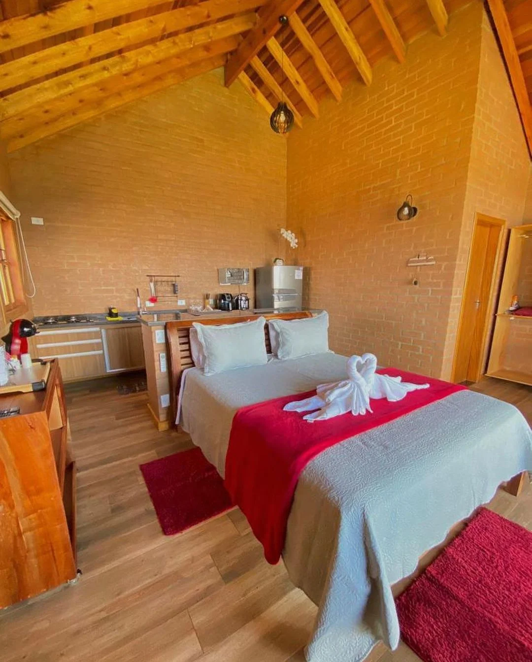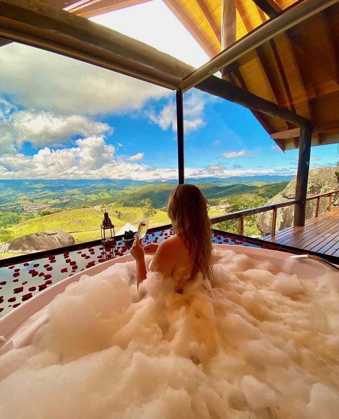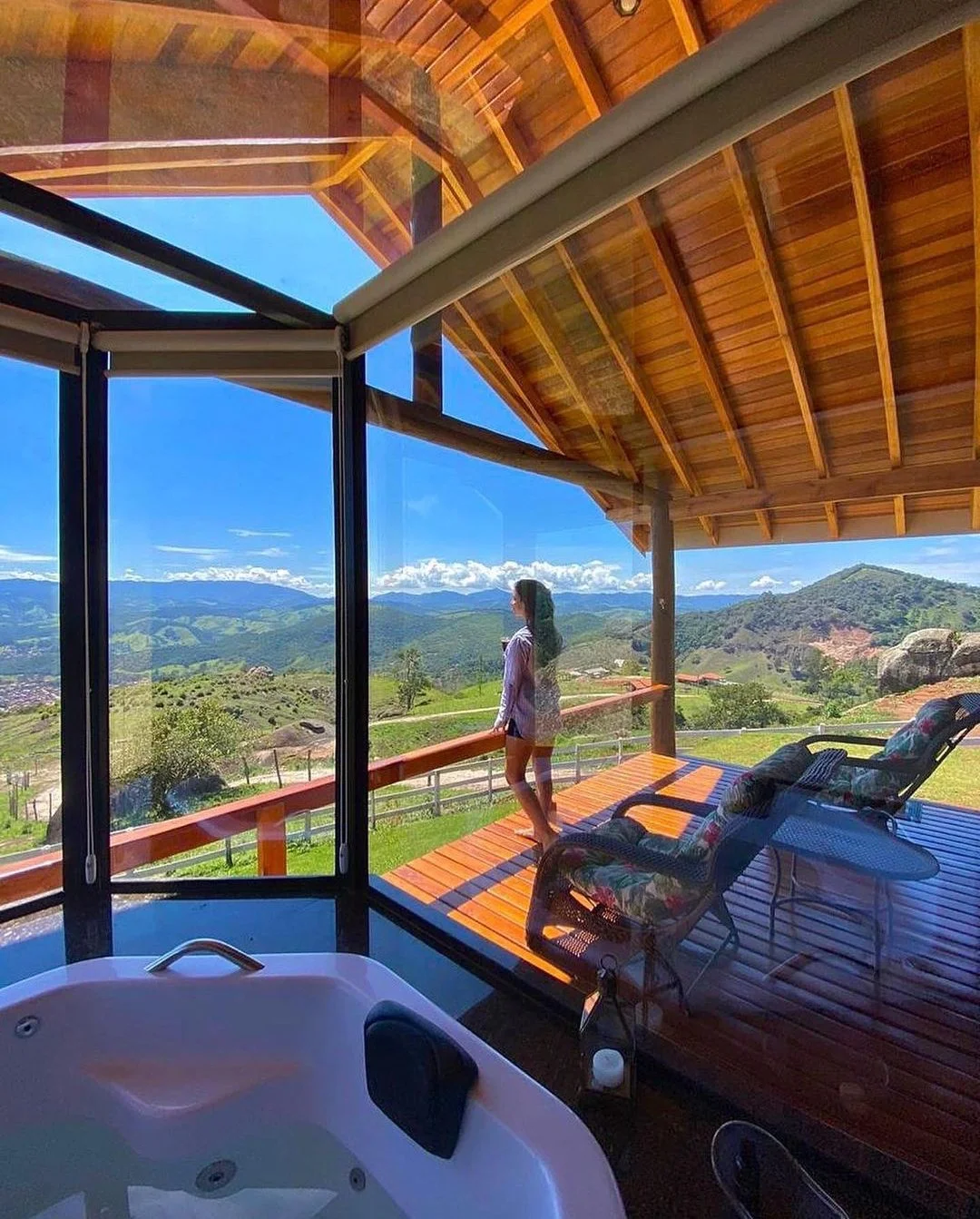 Os chalés estão localizados no alto da montanha, com uma vista exuberante para a bela Serra da Mantiqueira, a uma altitude de aproximadamente 1200 metros.