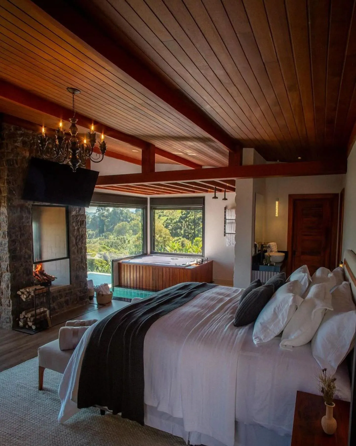 Ar condicionado Secador de cabelo TV a cabo / Smart TV Jacuzzi / Ofurô / Banheira Coberta Frigobar Lareira Máquina de Café Enxoval de Luxo (+ Roupão e Pantufa) Sauna Cozinha Estação de trabalho (mesa e cadeira) Piscina Aquecida ou climatizada Borda Infinita Coberta
