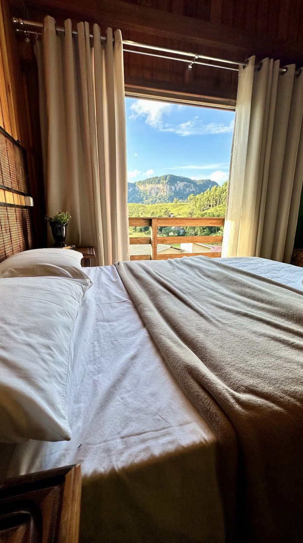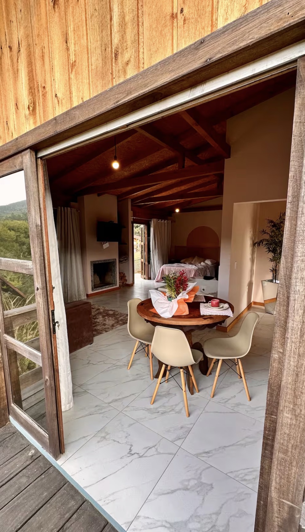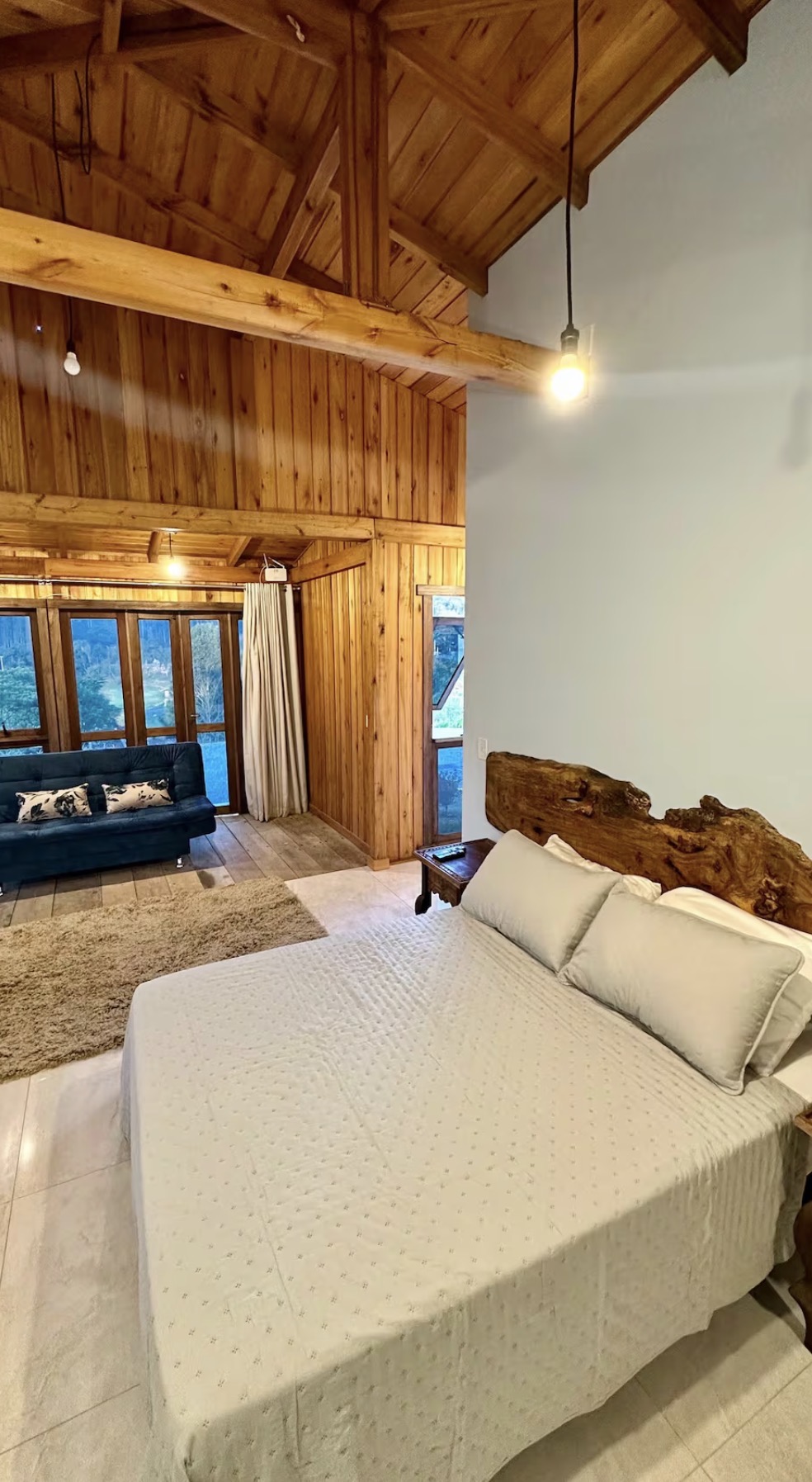 O espaço é privativo e estiloso, com atmosfera romântica e acabamento pensado para oferecer conforto e elegância. A vista contempla lago, áreas de cachoeira e formações rochosas, criando um cenário ideal para relaxar e apreciar a paisagem. Cada detalhe foi planejado para proporcionar uma estadia harmoniosa e marcante.