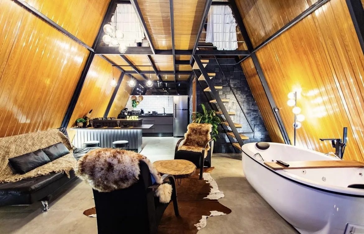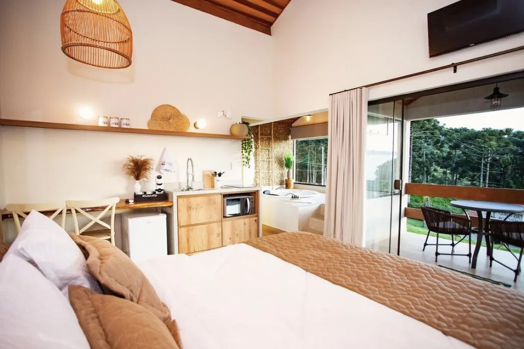 Ar condicionado Secador de cabelo TV a cabo / Smart TV Jacuzzi / Ofurô / Banheira Coberta Frigobar Lareira Máquina de Café Enxoval de Luxo (+ Roupão e Pantufa) Sauna Cozinha Estação de trabalho (mesa e cadeira) Piscina Aquecida ou climatizada Borda Infinita Coberta